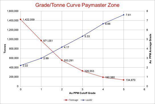 Figure 29‑2 Grade Tonne Curve for the Paymaster Zone Resource