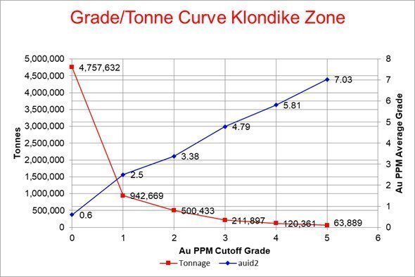 Figure 29‑3 Grade Tonne Curve for the Klondike Zone Resource