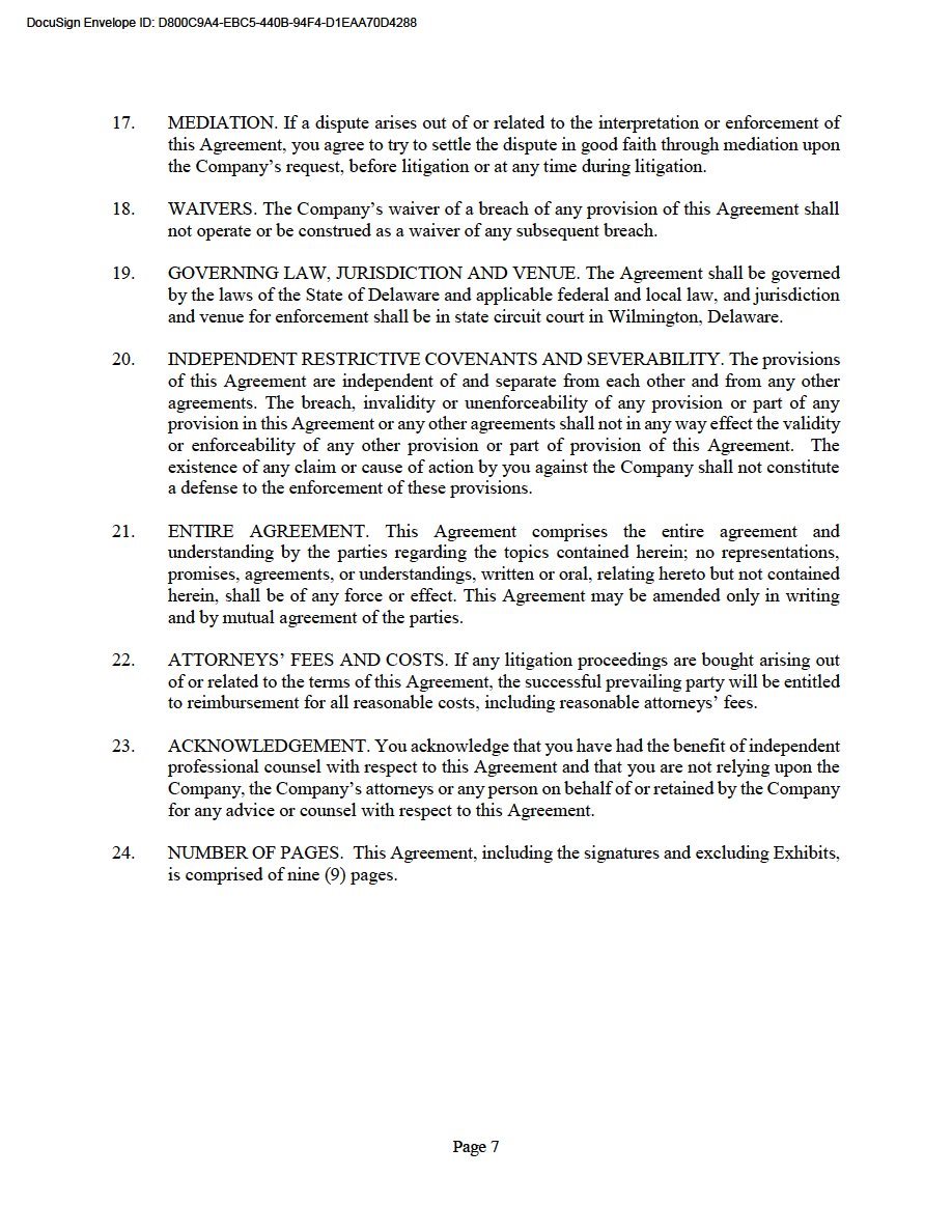 9. Severability. The provisions in this Policy are intended to be applied to the fullest extent of the law. To the extent that any provision of this Policy is found to be unenforceable or invalid under any applicable law, such provision will be applied to the maximum extent permitted, and will automatically be deemed amended in a manner consistent with its objectives to the extent necessary to conform to any limitations required under applicable law.