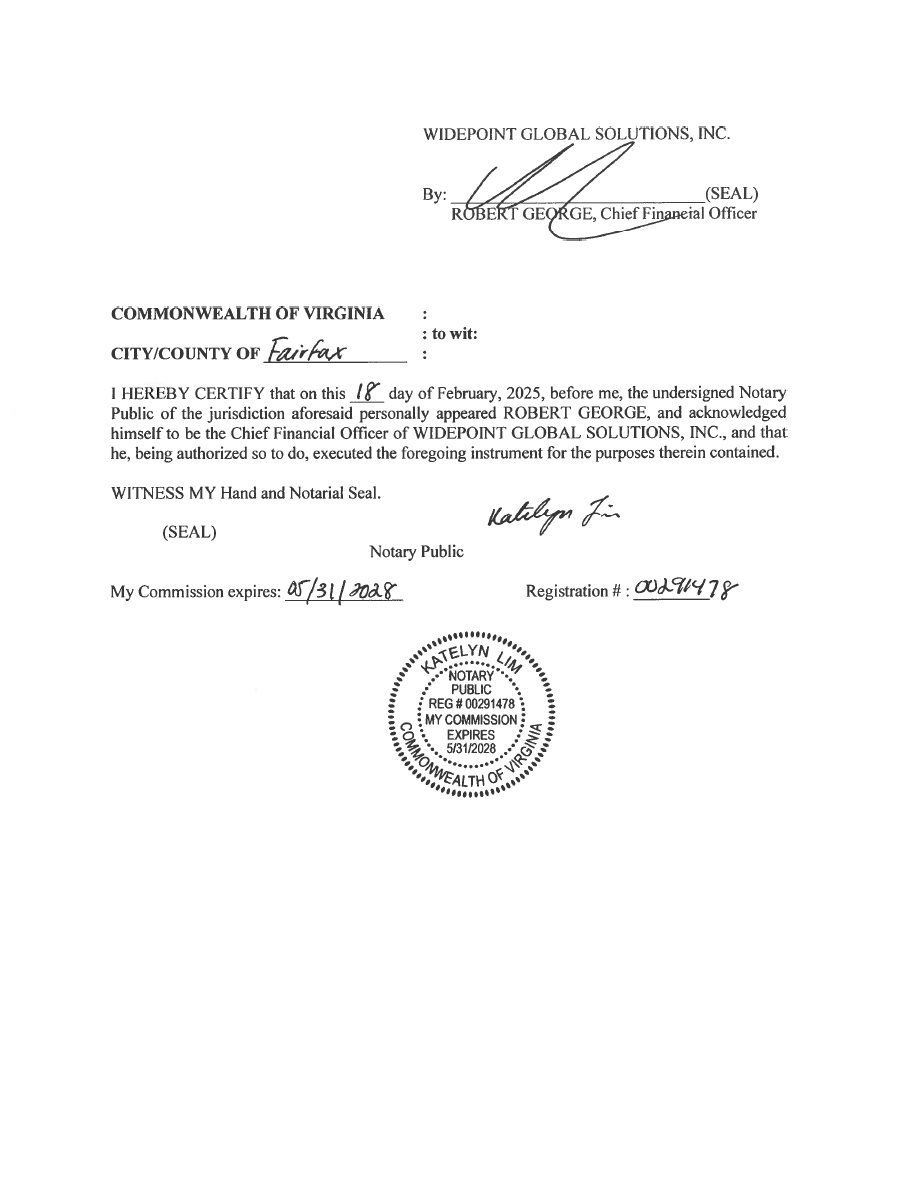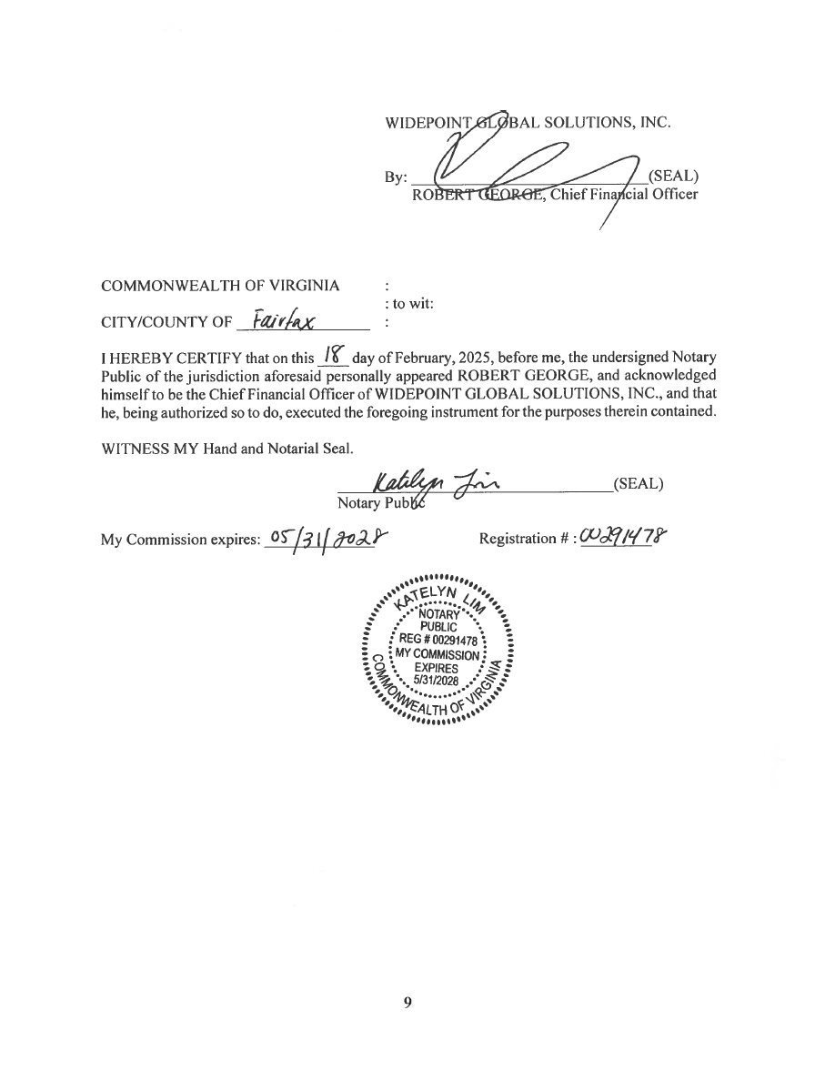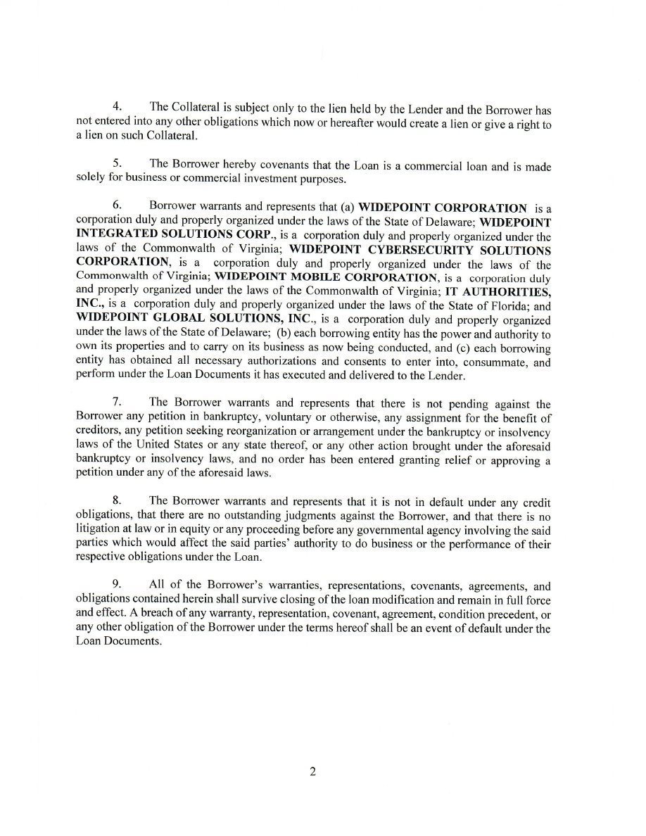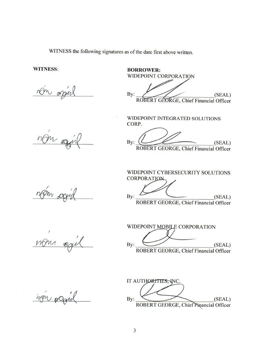 On February 18, 2025, WidePoint Corporation and its subsidiaries (the “Company”), as borrower, entered into a new Loan and Security Agreement (the “Loan”) and Promissory Note (the “Note,” and, together with the Loan, the “Agreements”) with Old Dominion National Bank. The Agreements provide for a $4,000,000 revolving line of credit facility (the “Credit Facility”). The new Loan Agreements replaced the Loan and Agreement entered into on February 29, 2024. The terms of the new Agreement are unchanged from the previous Agreement.