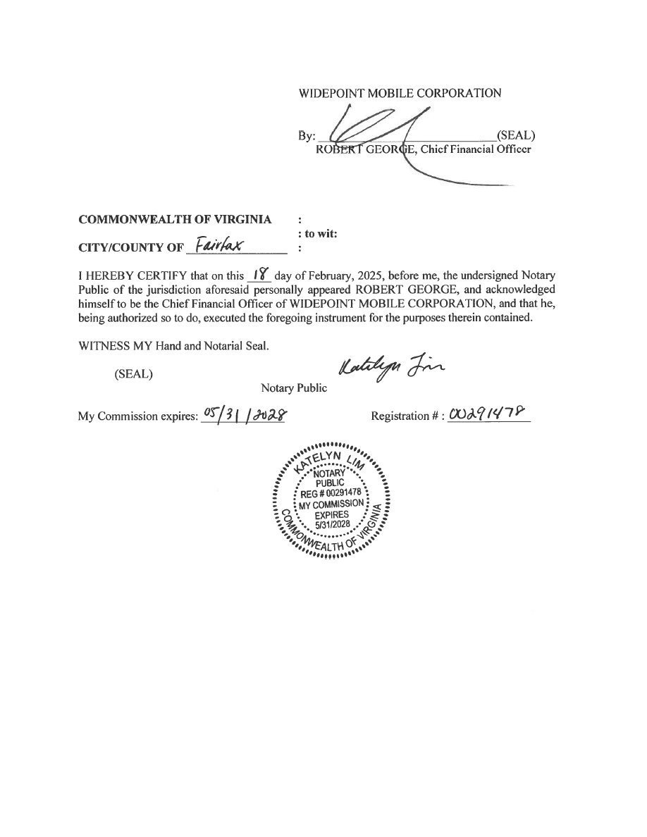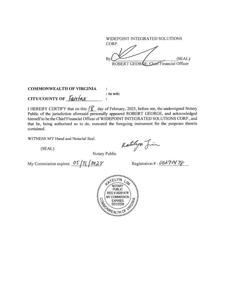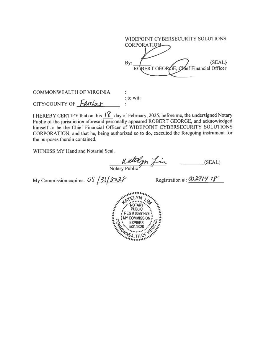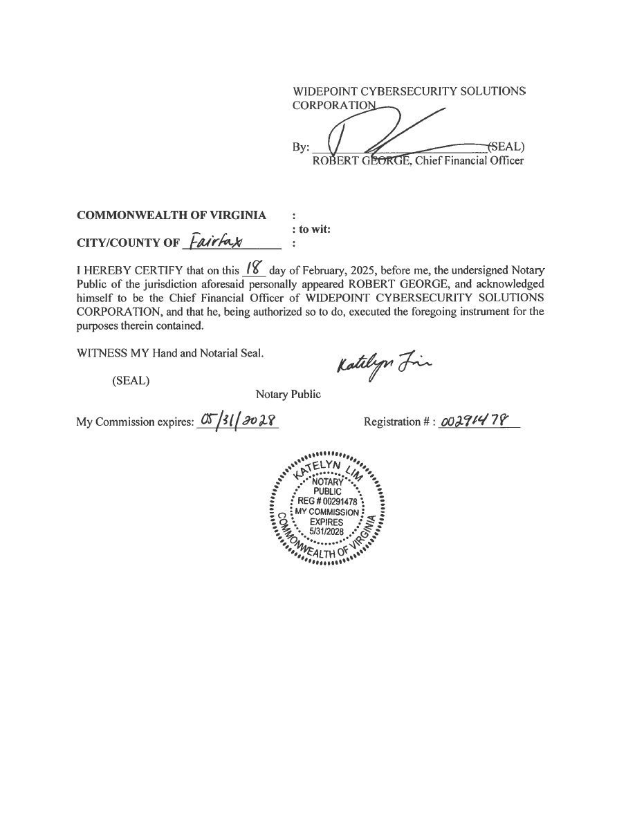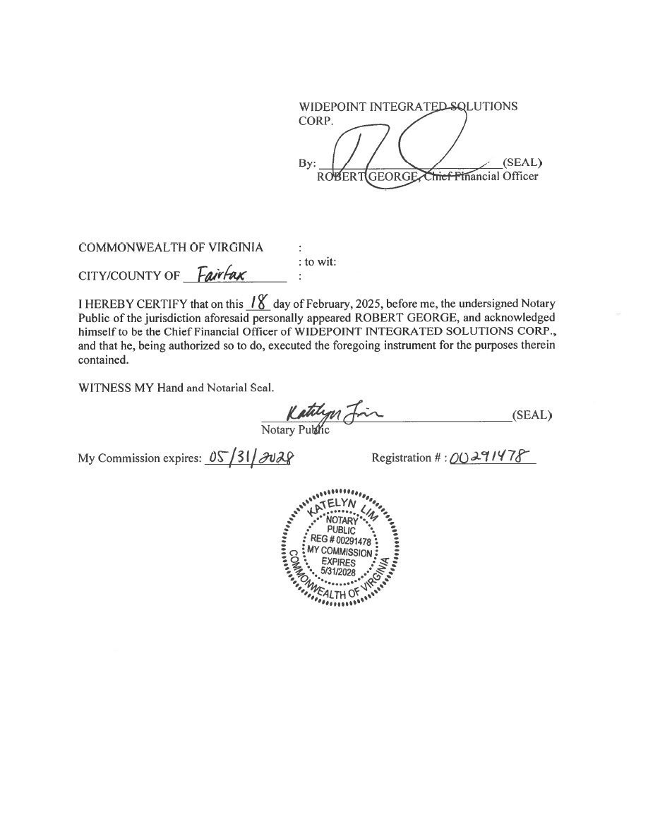 On February 18, 2025, WidePoint Corporation and its subsidiaries (the “Company”), as borrower, entered into a new Loan and Security Agreement (the “Loan”) and Promissory Note (the “Note,” and, together with the Loan, the “Agreements”) with Old Dominion National Bank. The Agreements provide for a $4,000,000 revolving line of credit facility (the “Credit Facility”). The new Loan Agreements replaced the Loan and Agreement entered into on February 29, 2024. The terms of the new Agreement are unchanged from the previous Agreement.