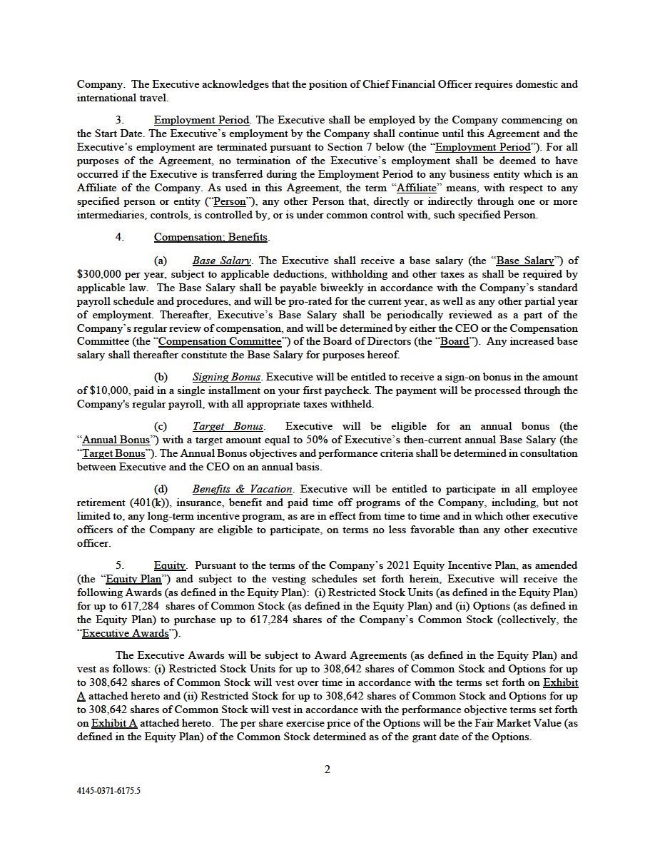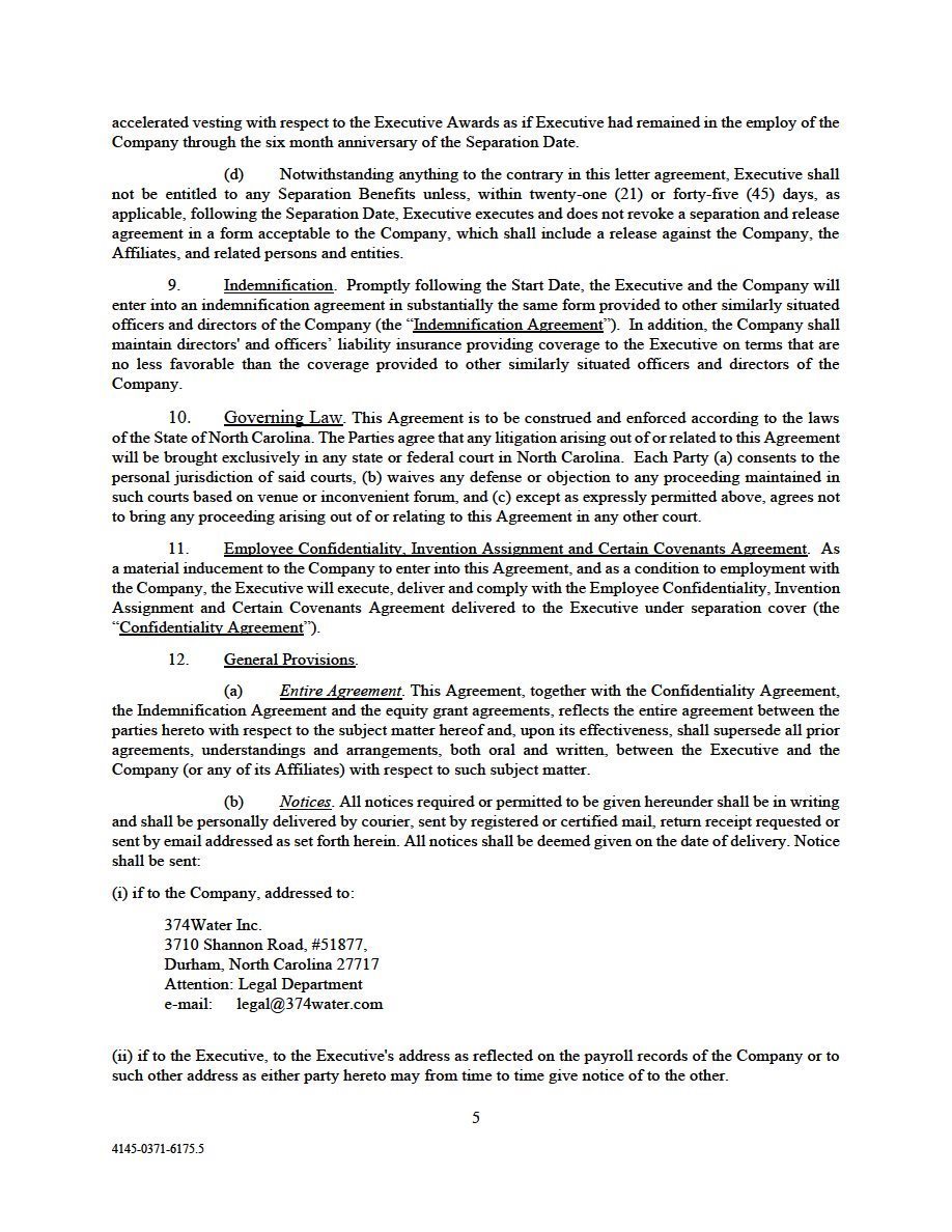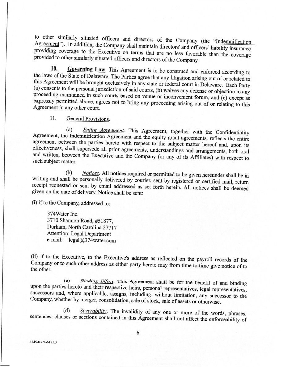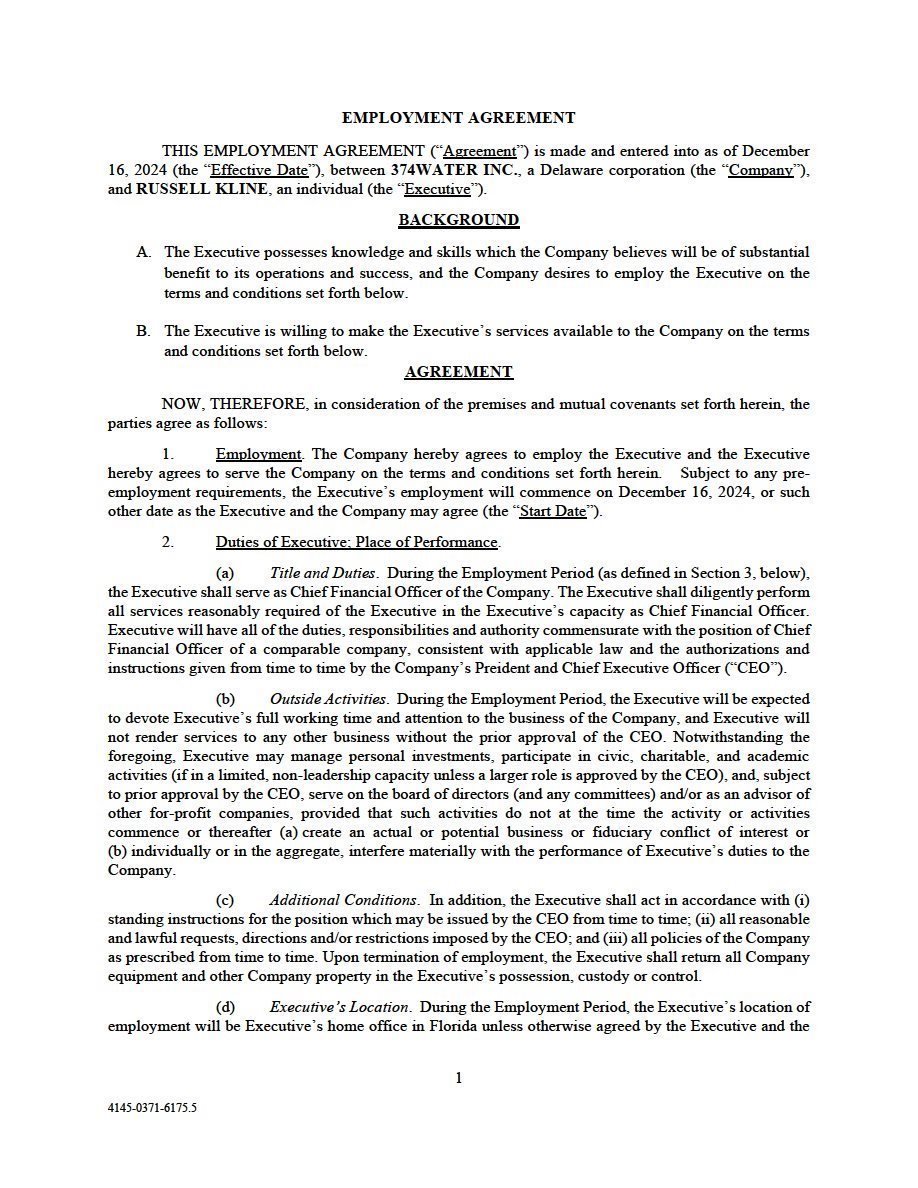 I am pleased to inform you that 374Water Inc. (the “Company”) has decided to grant you the following Restricted Stock Units, subject to the terms and conditions of the 374Water Inc. 2021 Equity Incentive Plan (the “Plan”) and the Restricted Stock Units agreement (the “Agreement”), as follows: