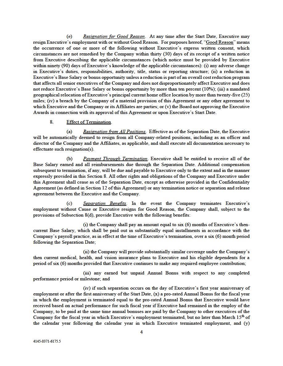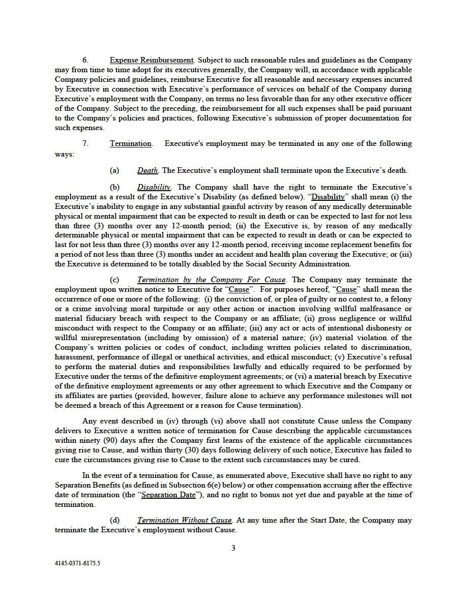 All capitalized terms in this Notice shall have the meaning assigned to them in this Notice, the Plan or the Agreement, as applicable. The terms and conditions governing your grant are set forth in the Plan and this Agreement. In the event of any conflict between the Plan and this Agreement, this Agreement shall control. This grant is contingent upon your execution of the Agreement.
