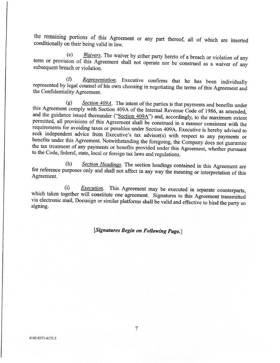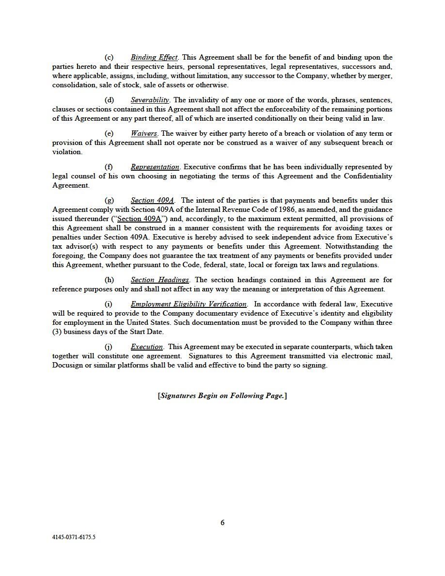 In Witness Whereof, the Company has caused this Agreement to be executed by its duly authorized officer and the Participant has executed this Agreement as of the Date of Grant.