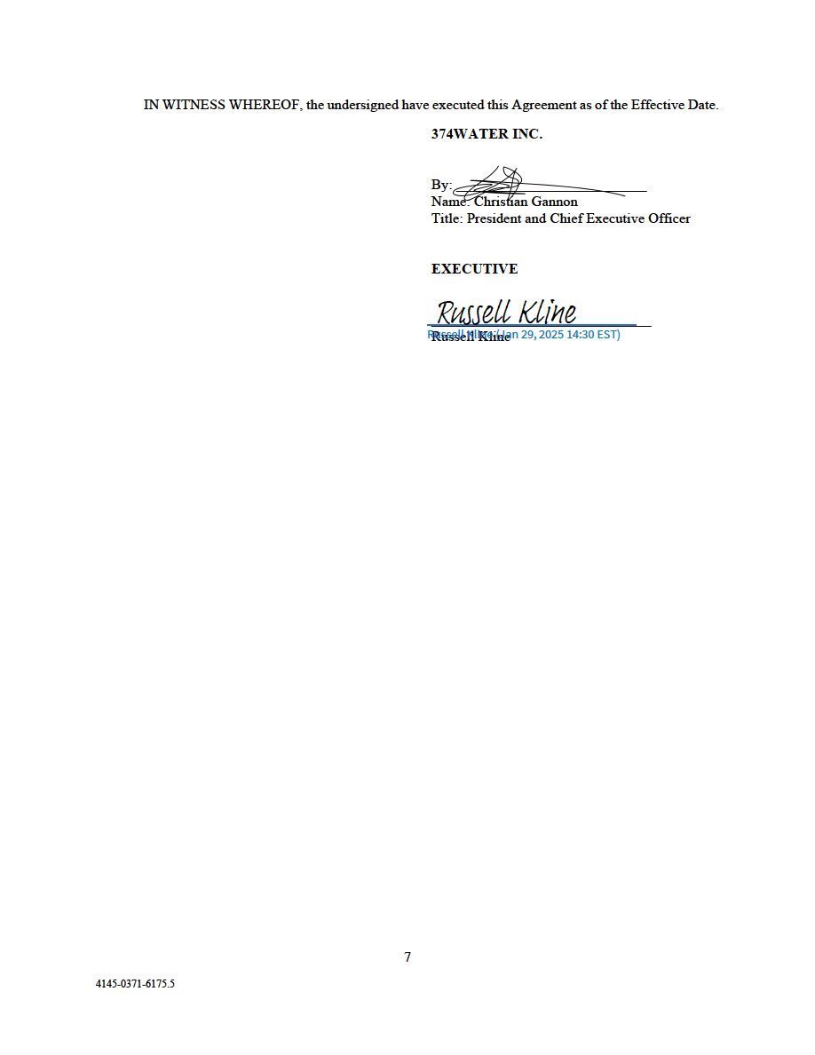 In connection with the Annual Report of 374Water Inc. (the “Company”) on Form 10-K for the period ended December 31, 2024 as filed with the Securities and Exchange Commission on the date hereof (the “Report”), I certify, pursuant to 18 U.S.C. § 1350, as adopted pursuant to § 906 of the Sarbanes-Oxley Act of 2002, that: