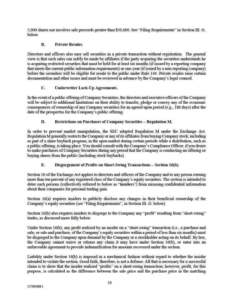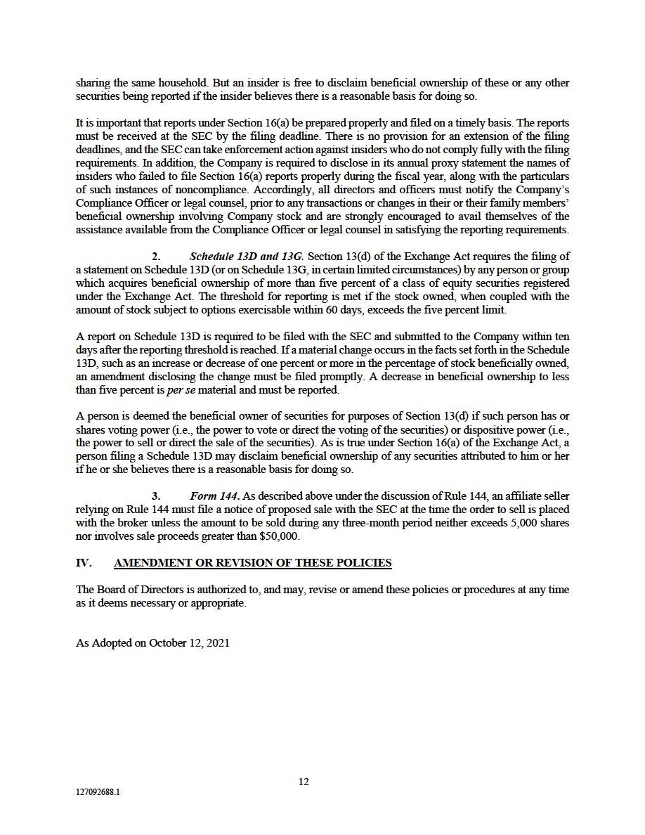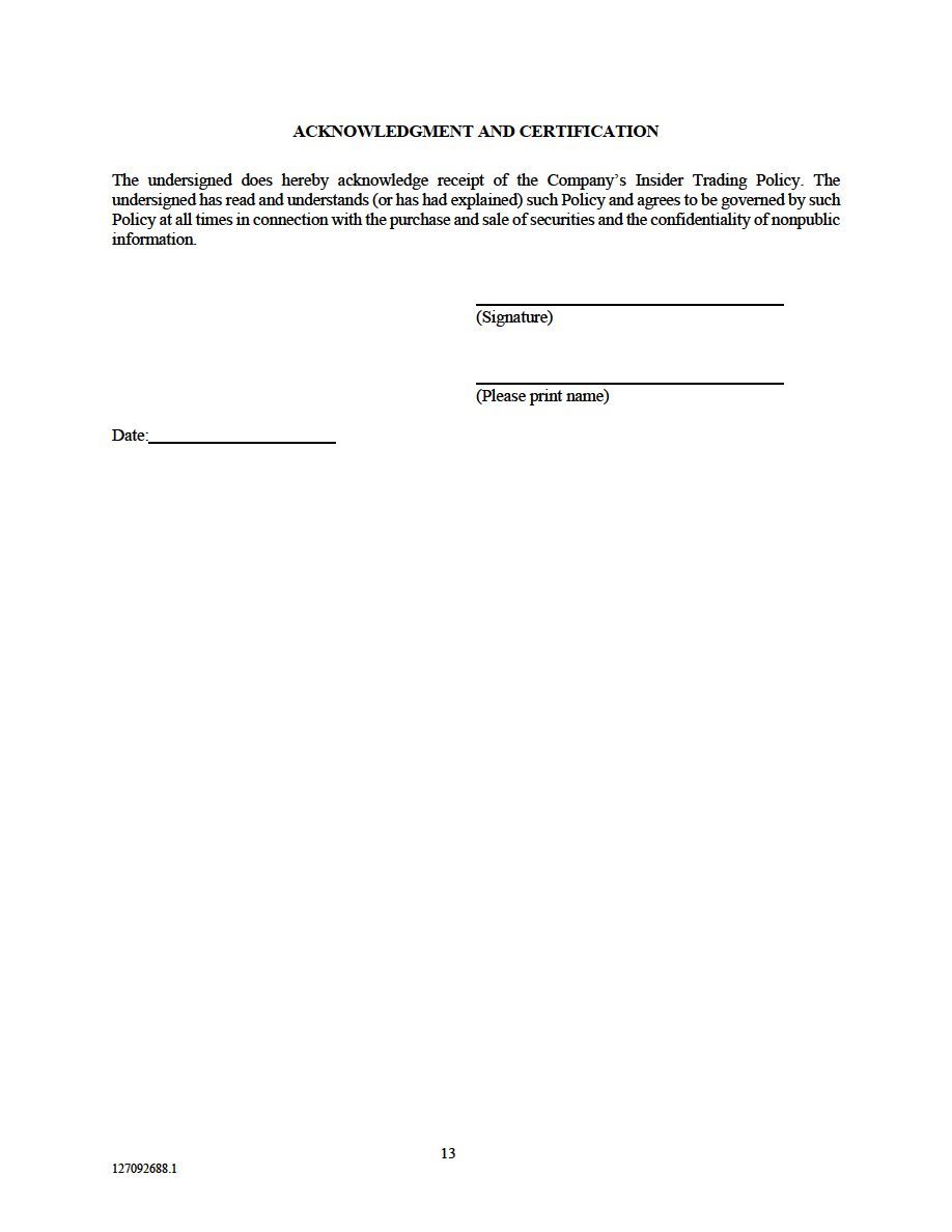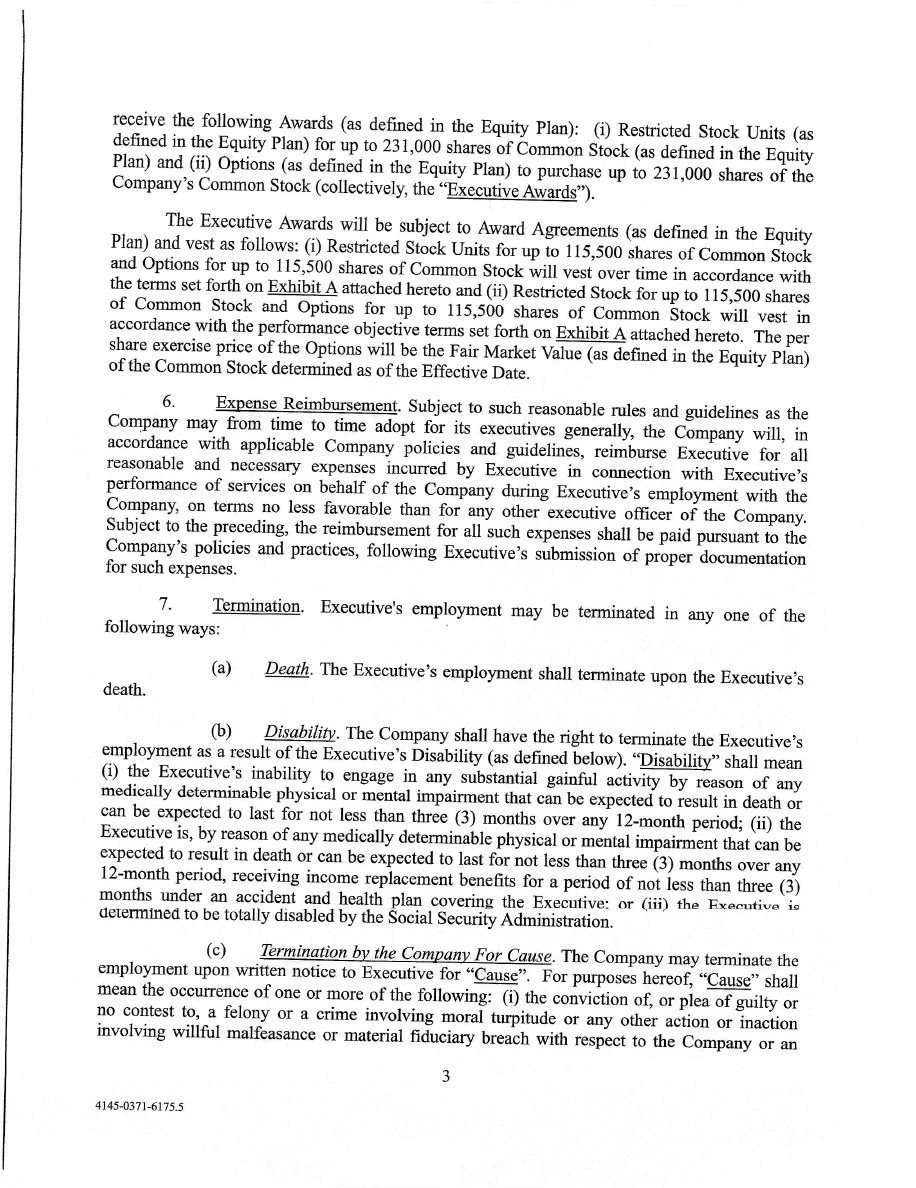 In connection with the issuance of shares of Common Stock upon the vesting of the RSUs (or any part thereof), the Participant hereby agrees to sign any and all documents required by law and/or the Company’s Corporate Charter.