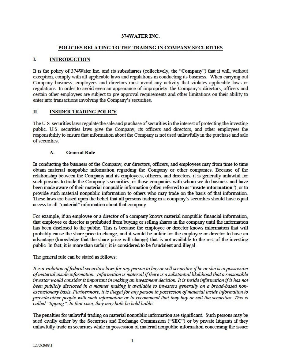 The Board of Directors of 374Water Inc. (the “Company”) hereby grants to the Participant, Restricted Stock Units set forth in the Notice of Grant (“RSU”), subject to the terms and conditions of the United States Internal Revenue Code of 1986 (“Code”) and the Plan, which is incorporated herein by reference. In the event of a conflict between the terms and conditions of the Plan and this Agreement, the terms and conditions of the Plan shall prevail. However, the Notice of Grant sets out specific terms for the Participant hereunder and will prevail over more general terms in the Plan and/or this Agreement, if any, or in the event of a conflict between them.