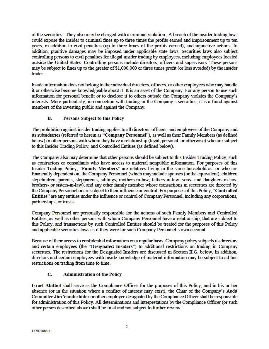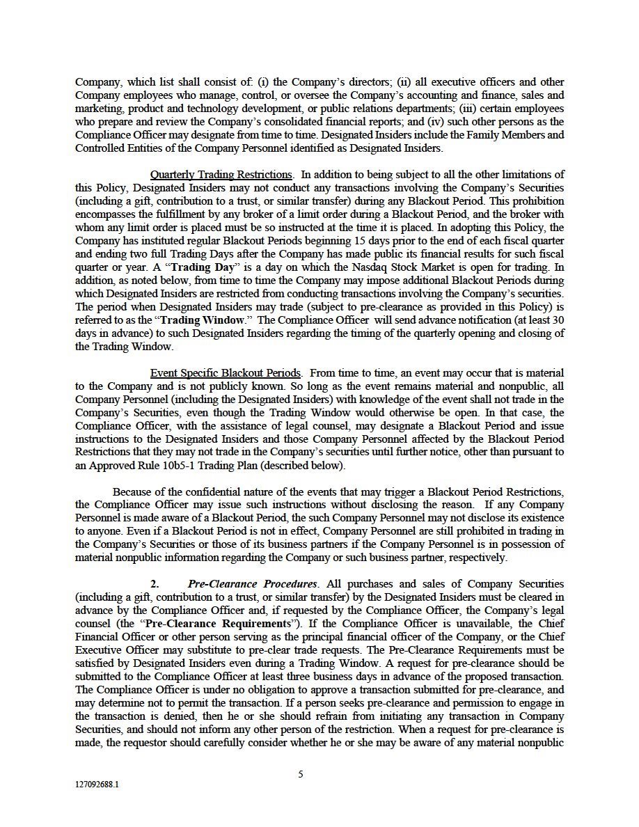 2.2. Non-Transferability of Shares. The transfer of the shares of Common Stock to be issued upon vesting of the RSU is limited as set forth in the Plan, the Company’s Certificate of Incorporation and Bylaws and in Section 4 below.