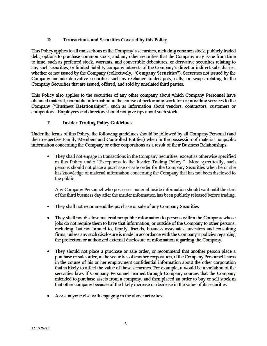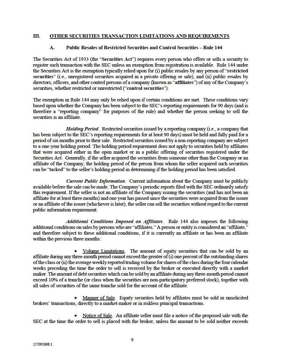 THE SHARES OF COMMON STOCKS REPRESENTED HEREBY HAVE NOT BEEN REGISTERED UNDER OR QUALIFIED UNDER THE SECURITIES LAWS OF ANY STATE OR JURISDICTION AND MAY NOT BE OFFERED, SOLD OR OTHERWISE TRANSFERRED, PLEDGED OR HYPOTHECATED UNLESS AND UNTIL QUALIFIED OR REGISTERED UNDER THE APPLICABLE SECURITIES LAWS OF THE APPLICABLE JURISDICTION, OR, IN THE OPINION OF COMPANY COUNSEL SATISFACTORY TO THE ISSUER OF THESE SECURITIES, SUCH OFFER, SALE OR TRANSFER, PLEDGE OR HYPOTHECATION IS IN COMPLIANCE WITH AN EXEMPTION UNDER THE APPLICABLE SECURITIES LAWS OF SUCH JURISDICTION. HEDGING TRANSACTIONS MAY NOT BE CONDUCTED UNLESS IN COMPLIANCE WITH THE APPLICABLE SECURITIES LAWS.