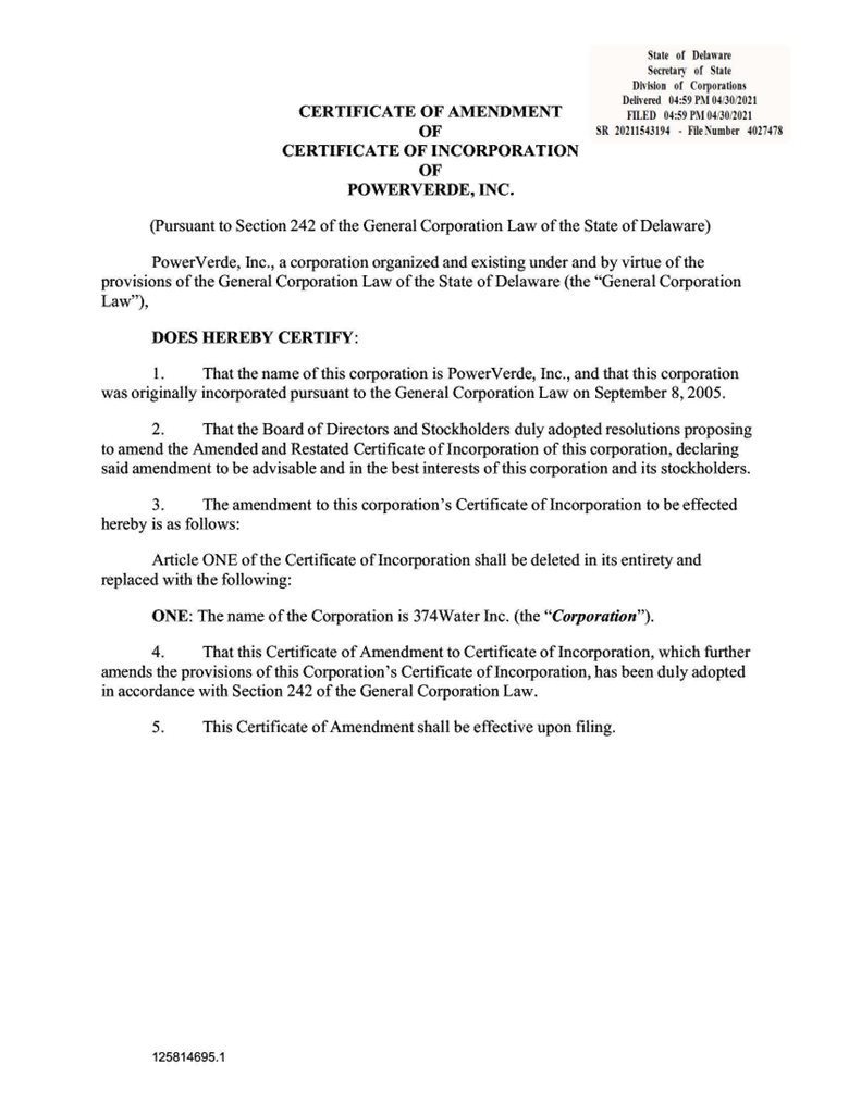 | 1. | I have reviewed this Annual Report on Form 10-K of 374Water Inc.; |