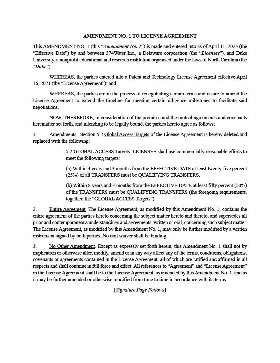 | 1. | I have reviewed this Form 10-Q of 374Water Inc. for the quarterly period ending March 31, 2025; |