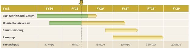 | · | The overall project progress timeline and expected throughput increase from 13Mtpa to 23Mtpa in FY27 (1-July-2026 to 30-June-2027) is shown below in Figure 2: |