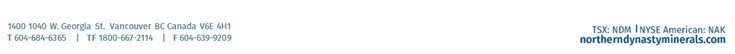 This document includes certain statements that may be deemed "forward-looking statements" under the United States Private Securities Litigation Reform Act of 1995 and under applicable provisions of Canadian provincial securities laws. All statements in this document, other than statements of historical facts, which address permitting, including the withdrawal of the EPA veto and the development and production for the Pebble Project are forward-looking statements. Additional forward looking statements made by the Company under its continuous disclosure obligations include statements regarding (i) the development plan for the Pebble Project (ii) the right-sizing and de-risking of the Pebble Project, (iii) the design and operating parameters for the Pebble Project development plan, including projected capital and operating costs, (iv) the social integration of the Pebble Project into the Bristol Bay region and benefits for Alaska, (v) the political and public support for the permitting process, (vi) the ability of the Pebble Project to ultimately secure all required federal and state permits, (vii) the ability of the Company and/or the State of Alaska to challenge the Environmental Protection Agency’s (“EPA’s”) Final Determination process under the Clean Water Act and ultimately the U.S. Army Corps of Engineers Record of Decision (“USACE ROD”) through legal actions; (viii) exploration potential of the Pebble Project, (ix) future demand for copper, gold and other metals, (x) if permitting is ultimately secured, the ability to demonstrate the Pebble Project is ultimately commercially viable, and (xi) the potential addition of partners in the Pebble Project. Although NDM believes the expectations expressed in these forward-looking statements are based on reasonable assumptions, such statements should not be in any way be construed as guarantees that the Pebble Project will secure all required government permits or regarding the ability of NDM to develop the Pebble Project in light of the USACE ROD and its subsequent remand decision and the EPA’s Final Determination, establish the commercial feasibility of the Pebble Project, achieve the required financing or develop the Pebble Project.