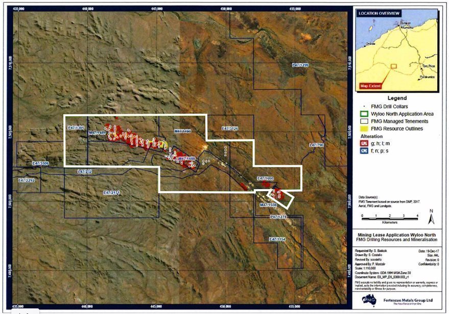 FMG Pilbara Pty Ltd (“FMGP”) Ltd, which is a subsidiary of Fortescue, is the operator of the key Wyloo North mining lease M47/1567 (formerly M47/1488, M47/1489, M47/1490, M47/1508, E47/1395 and E47/1650), which is part of a package of tenements collectively known as the Wyloo North Project. Exploration mapping and drilling have been carried out on the project area since mid-2006 and through the results of that drilling, FMGP has identified significant iron ore mineralization within the tenement boundaries. During 2006 through to 2016, FMGP conducted extensive mapping programmes throughout the Wyloo North project. From the mapping focusing on the Marra Mamba and Brockman Iron Formation bedrock, areas of mineralization were identified for Reverse Circulation (“RC”) drilling to test for bedded iron deposits and detrital iron deposits.