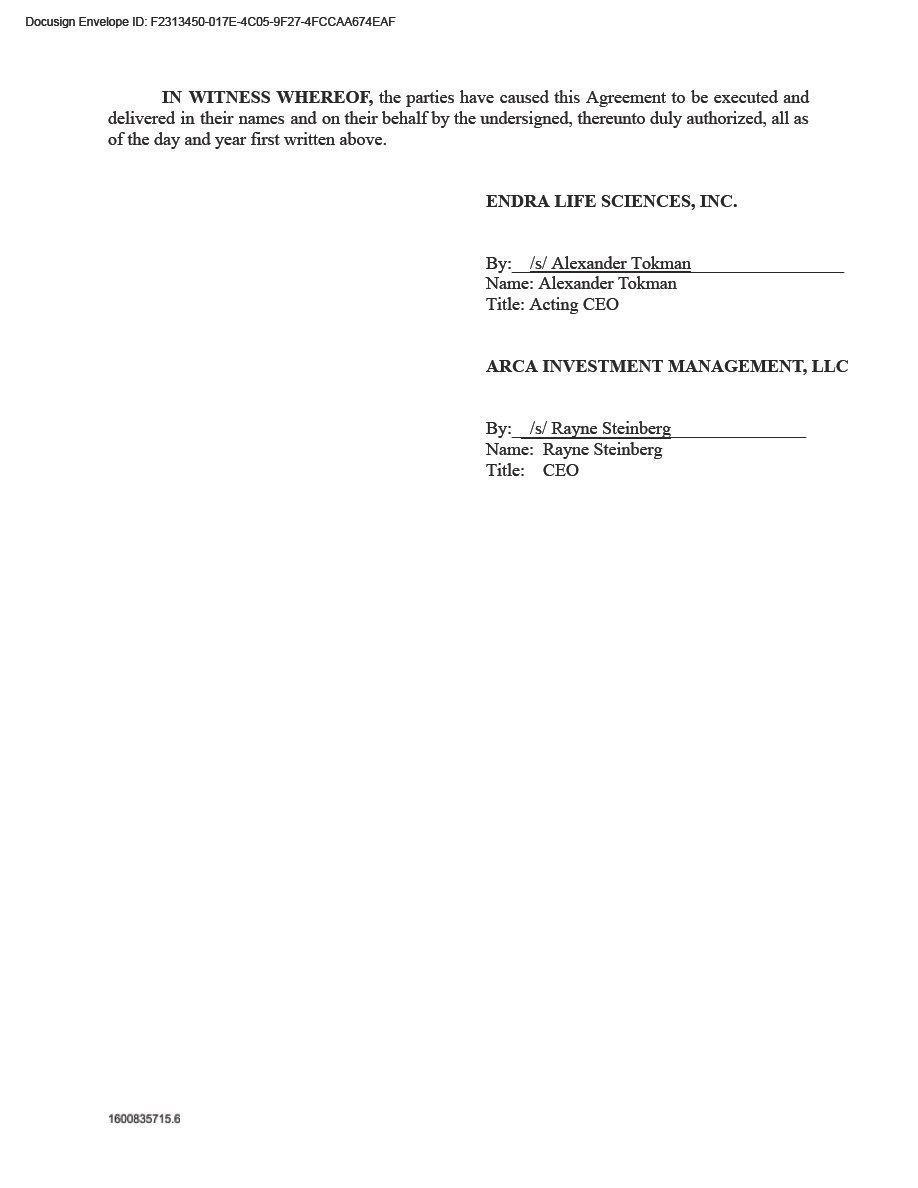 All statements in this press release that are not based on historical fact are “forward-looking statements” within the meaning of Section 27A of the Securities Act of 1933 and Section 21E of the Securities Exchange Act of 1934. Forward-looking statements, which are based on certain assumptions and describe our future plans, strategies and expectations, can generally be identified by the use of terms such as “approximate,” “anticipate,” “attempt,” “believe,” “could,” “estimate,” “expect,” “forecast,” “future,” “goal,” “hope,” “intend,” “may,” “plan,” “possible,” “potential,” “project,” “seek,” “should,” “will,” “would,” or other comparable terms (including the negative of any of the foregoing), although some forward-looking statements are expressed differently. Each forward-looking statement contained in this press release is subject to risks and uncertainties that could cause actual results to differ materially from those expressed or implied by such statement. Applicable risks and uncertainties include, among others: the results of the proposed offering; expectations regarding our DAT strategy and ability to execute such strategy successfully; our limited commercial and DAT experience, limited cash and history of losses; our ability to obtain adequate financing to fund our business operations or DAT strategy in the future; risks relating to the treatment of crypto assets for U.S. and foreign tax purposes; regulatory developments related to crypto assets and crypto asset markets; a determination that we are an investment company under the Investment Company Act of 1940; any changes in the accounting treatment of cryptocurrency holdings; the risk that the price of the Company's common stock may be highly correlated to the price of the digital assets that it holds; our ability to achieve profitability; delays and changes in regulatory requirements, policy and guidelines, including laws and accounting rules applicable to digital assets and potential delays in submitting required regulatory applications or other submissions with respect to U.S. Food and Drug Administration (“FDA”) or other regulatory agency approval; our ability to obtain and maintain required CE mark certifications and secure required FDA and other governmental approvals for our Thermo-Acoustic Enhanced Ultrasound (“TAEUS”) applications; our ability to develop any commercially feasible applications based on our TAEUS technology; market acceptance of our technology; the effect of macroeconomic conditions on our business; results of our human studies, which may be negative or inconclusive; our ability to find and maintain development partners; our reliance on third parties, collaborations, strategic alliances and licensing arrangements to complete our TAEUS business strategy; the amount and nature of competition in the healthcare industry; our ability to protect our intellectual property; potential changes in the healthcare industry or third-party reimbursement practices; our ability to comply with regulation by various federal, state, local and foreign governmental agencies and to maintain necessary regulatory clearances or approvals; our ability to regain compliance with Nasdaq listing standards; our dependence on our senior management team; and the other risks and uncertainties described in the Risk Factors and Management’s Discussion and Analysis of Financial Condition and Results of Operations sections of the Company’s most recent Annual Report on Form 10-K and in subsequent Quarterly Reports on Form 10-Q filed with the Securities and Exchange Commission and the Risk Factors sections of the preliminary prospectus describing the terms of the proposed offering filed with the SEC. You should not rely upon forward-looking statements as predictions of future events. The forward-looking statements made in this press release speak only as of the date of issuance, and ENDRA assumes no obligation to update any such forward-looking statements to reflect actual results or changes in expectations, except as otherwise required by law.
