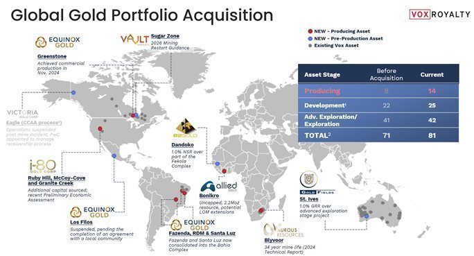 Kyle Floyd, Chief Executive Officer, stated: “Vox delivered a remarkable quarter which included record quarterly revenue, multiple transactions to acquire 11 assets and the successful completion of a financing and upsized credit facility to fund the highly accretive Global Gold Portfolio acquisition. During the quarter, we noted significant organic developments in our royalty portfolio that are expected to contribute to future revenues, including development decisions at Sulphur Springs and Horseshoe Lights, and gold development studies at the Ashburton, Bulgera and Estrades projects. The organic growth alongside the Global Gold Portfolio acquisition is expected to deliver much higher operating margins and per share returns. As we progress into Q4 and beyond, we look forward to demonstrating the successful realization of Vox’s burgeoning operating leverage.”