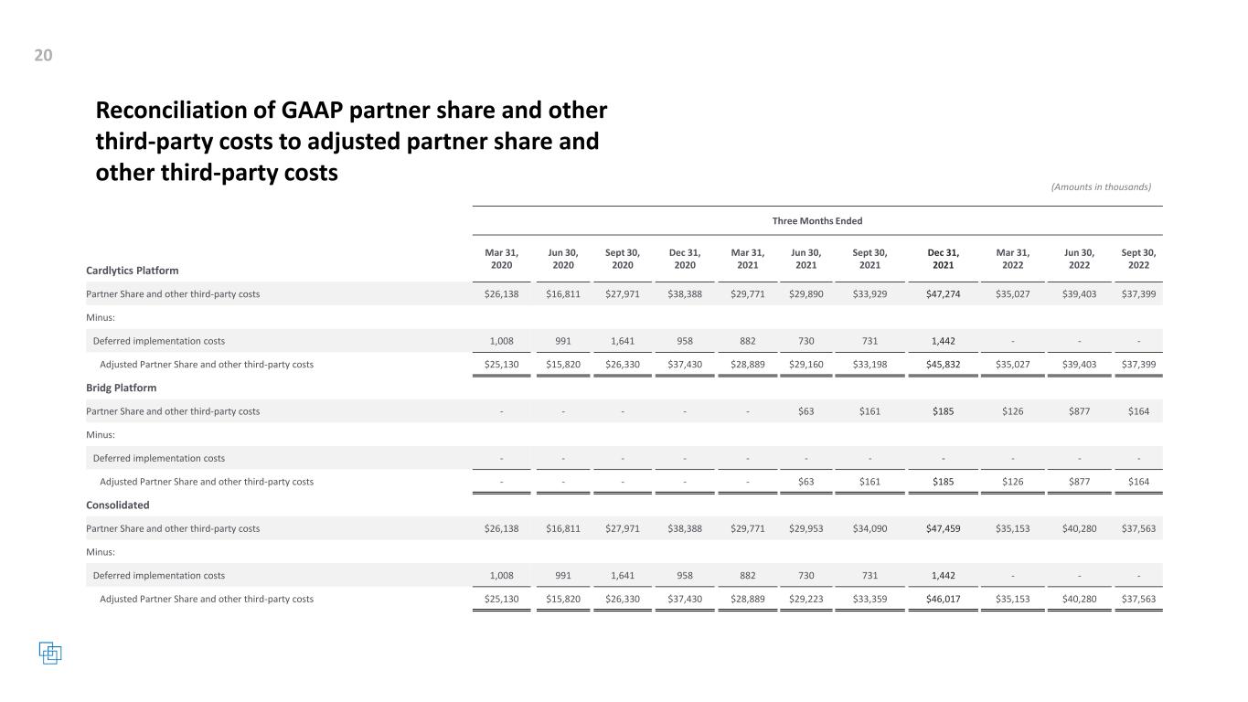 | Adjusted Partner Share and other third-party costs | $ | 111,829 | $ | 1,167 | $ | 112,996 | $ | 91,247 | $ | 224 | $ | 91,471 | |||||||||||||||||||||||