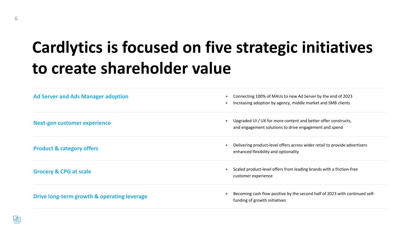 Cardlyticsは、本日2022年11月1日午後5時(東部標準時)/午後2時(太平洋標準時)に開催する電話会議で、2022年第3四半期の財務結果について説明します。ライブダイヤルインは、http://ir.cardlytics.com/ で登録した後に利用できます。電話会議終了後まもなく、この電話会議のリプレイはCardlytics Investor Relationsのウェブサイト(http://ir.cardlytics.com/)で2022年11月8日午後8時(米国東部時間)まで視聴可能です。電話会議終了後、ウェブキャストの録画再生はCardlyticsのウェブサイトで視聴可能です。