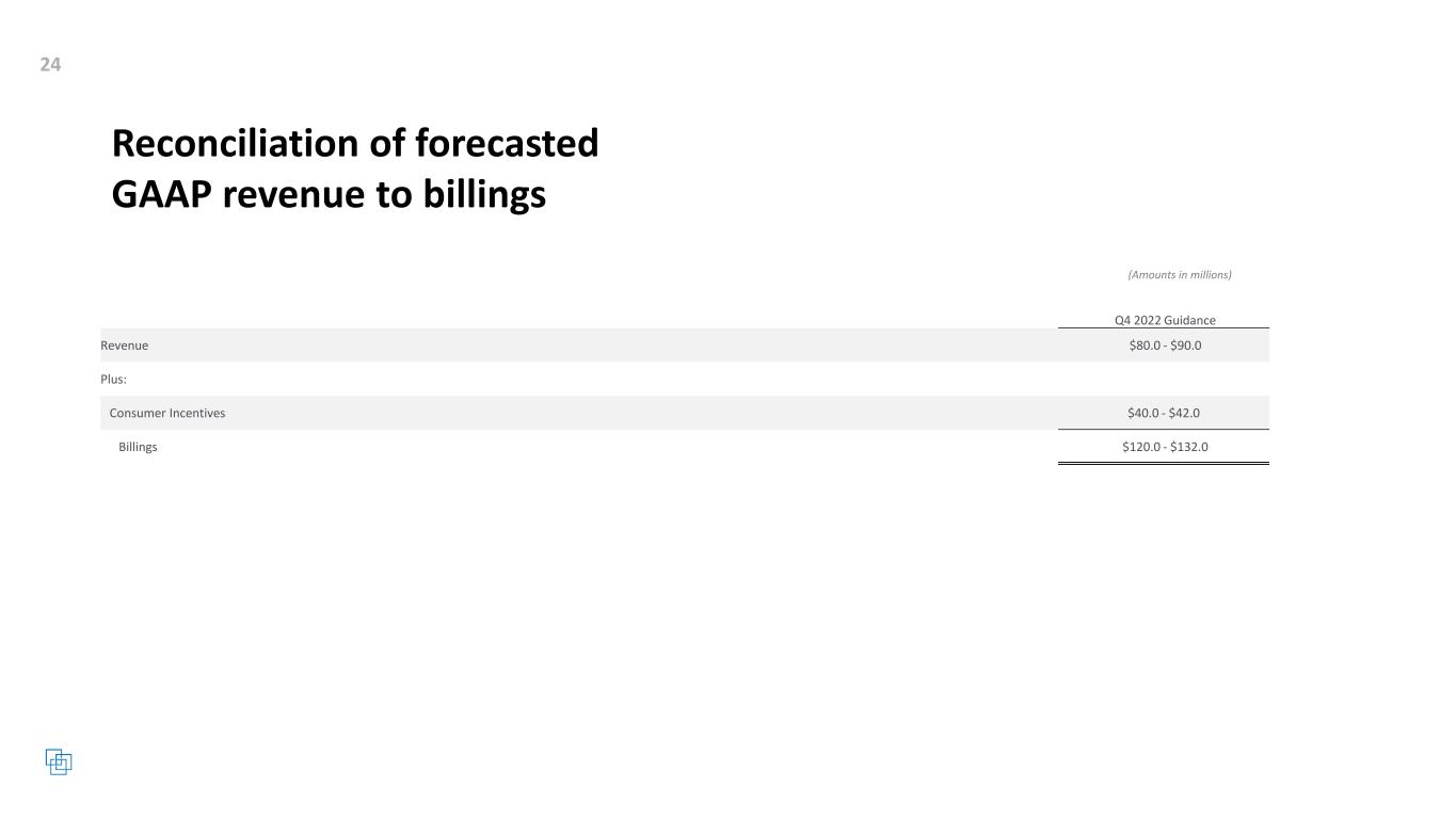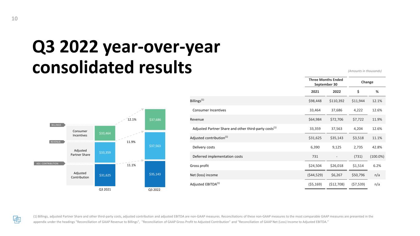 米国において一般に公正妥当と認められた会計原則(以下「GAAP」)に準拠したプレスリリースや関連する電話会議、ウェブ放送で発表した財務指標を補足するために、当社は以下の非GAAPベースの財務指標も表示しています。請求額、調整後貢献額、調整後EBITDA、調整後パートナー持分およびその他第三者の費用、非GAAPベースの純損失および1株当たり非GAAPベースの純損失、さらに月間アクティブユーザー数(以下「MAU」)やユーザー当たり平均収入(以下「ARPU」、年換算定期収入額)などその他の特定のパフォーマンス指標も示しています。