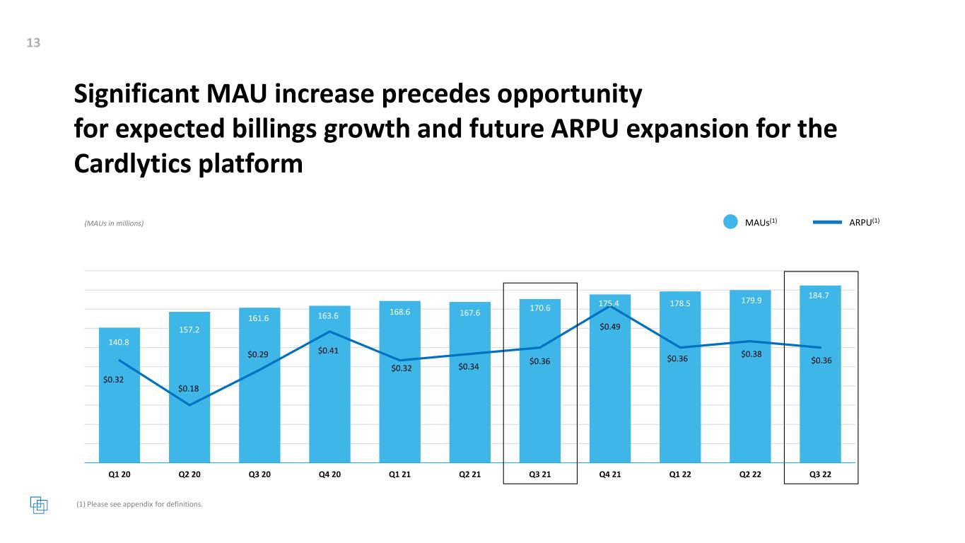 -カードリフトのARPUは、2022年第3四半期と2021年第3四半期に0.36ドルでした。