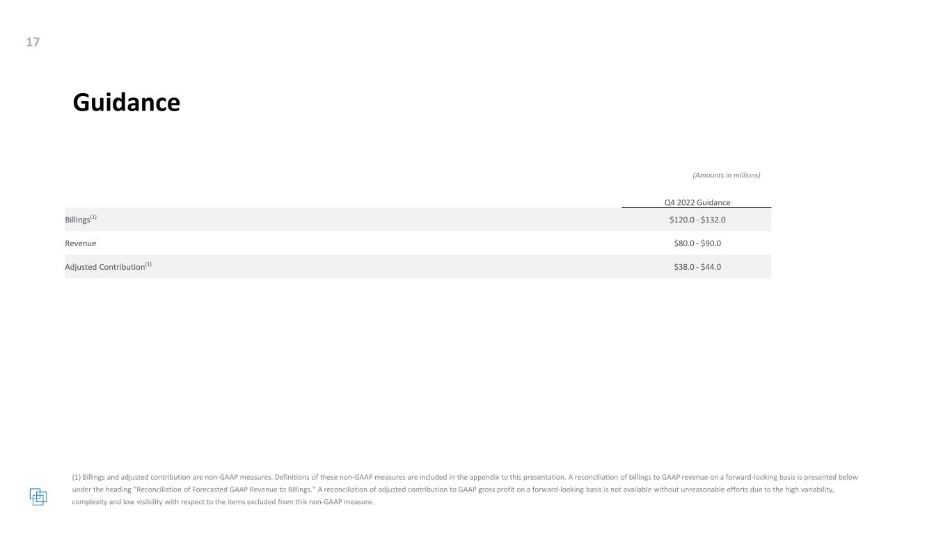 (2)この非 GAAP 型指標から除外される項目は変動性が高く、複雑であり、可視性が低いため、合理的でない努力なしに は GAAP 型売上総利益に対する調整後貢献度の調整を行うことはできません。