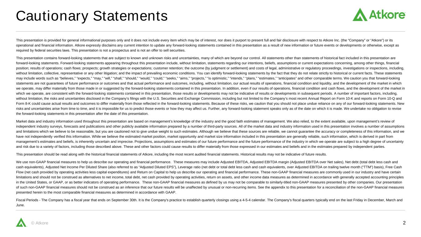 当社の詳細については、当社ウェブサイトhttps://investors.atkore.com。