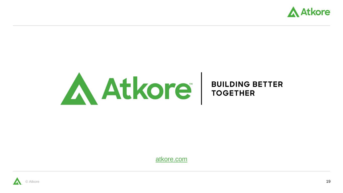 アトコレは今後、ウェブサイト(www.atkore.com)、プレスリリース、証券取引委員会(SEC)への届出、電話会議、メディア向け放送、ウェブキャストなどを通じて、会社の発展や業績に関する発表を行う予定です。