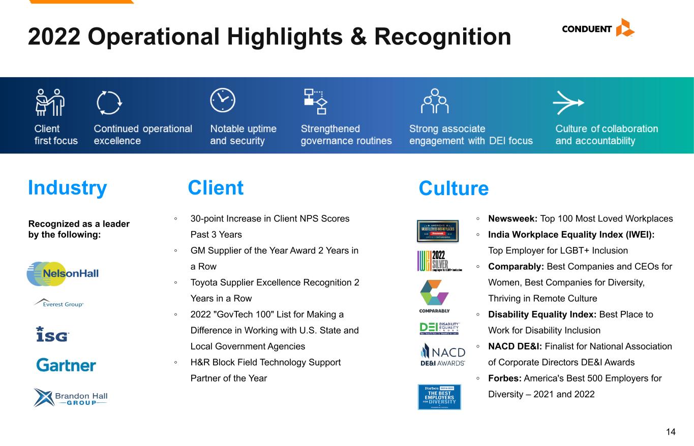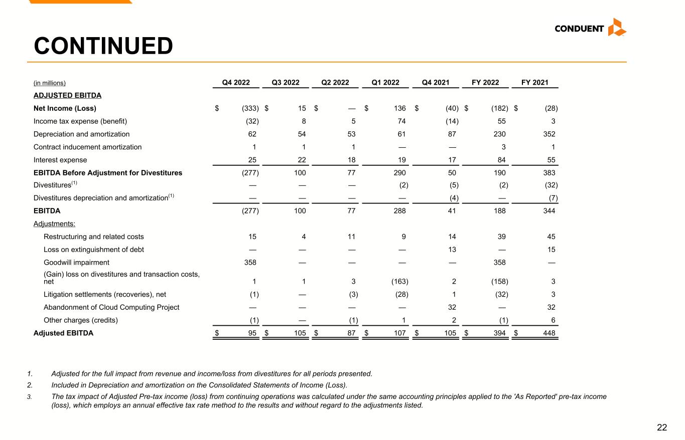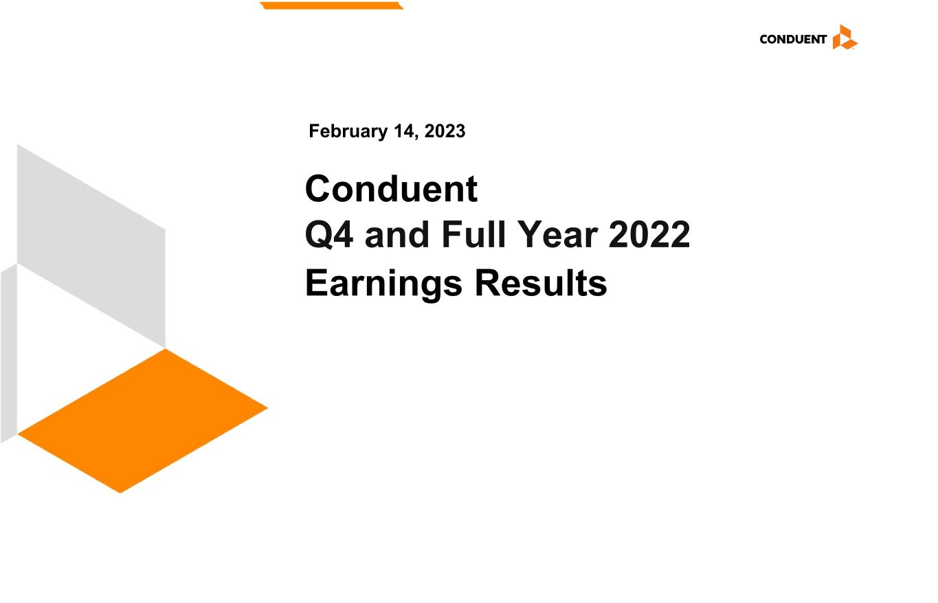 FLORHAM PARK, NJ, February 14, 2023 - Conduent (NASDAQ: CNDT), a global technology-led business process solutions company, today announced its fourth quarter and full year 2022 financial results.