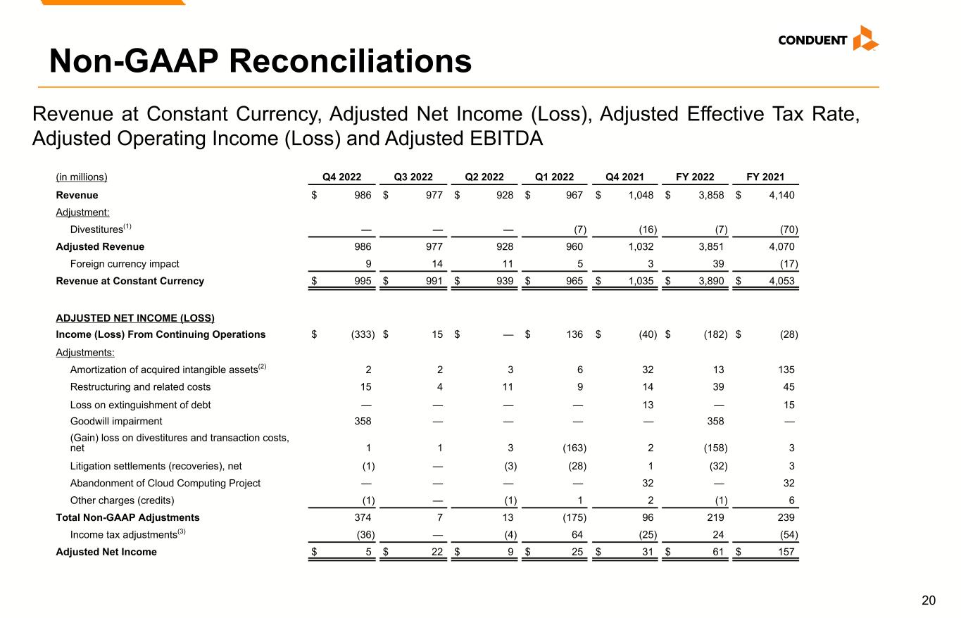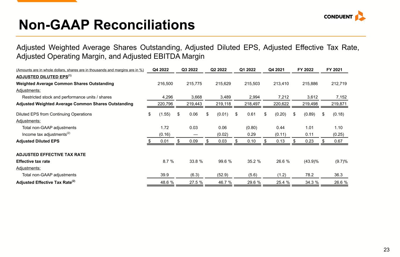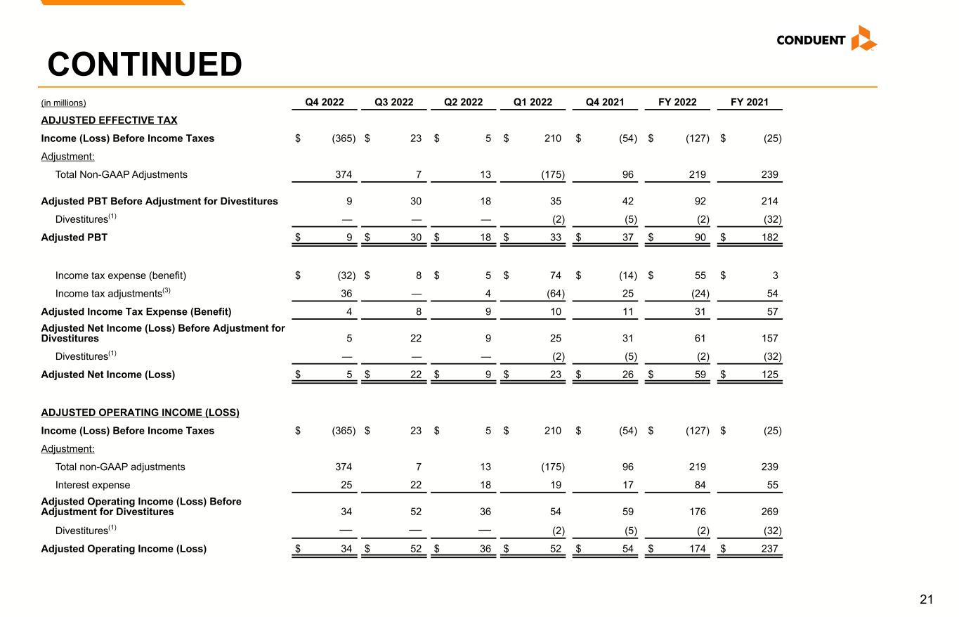FLORHAM PARK, NJ, February 14, 2023 - Conduent (NASDAQ: CNDT), a global technology-led business process solutions company, today announced its fourth quarter and full year 2022 financial results.