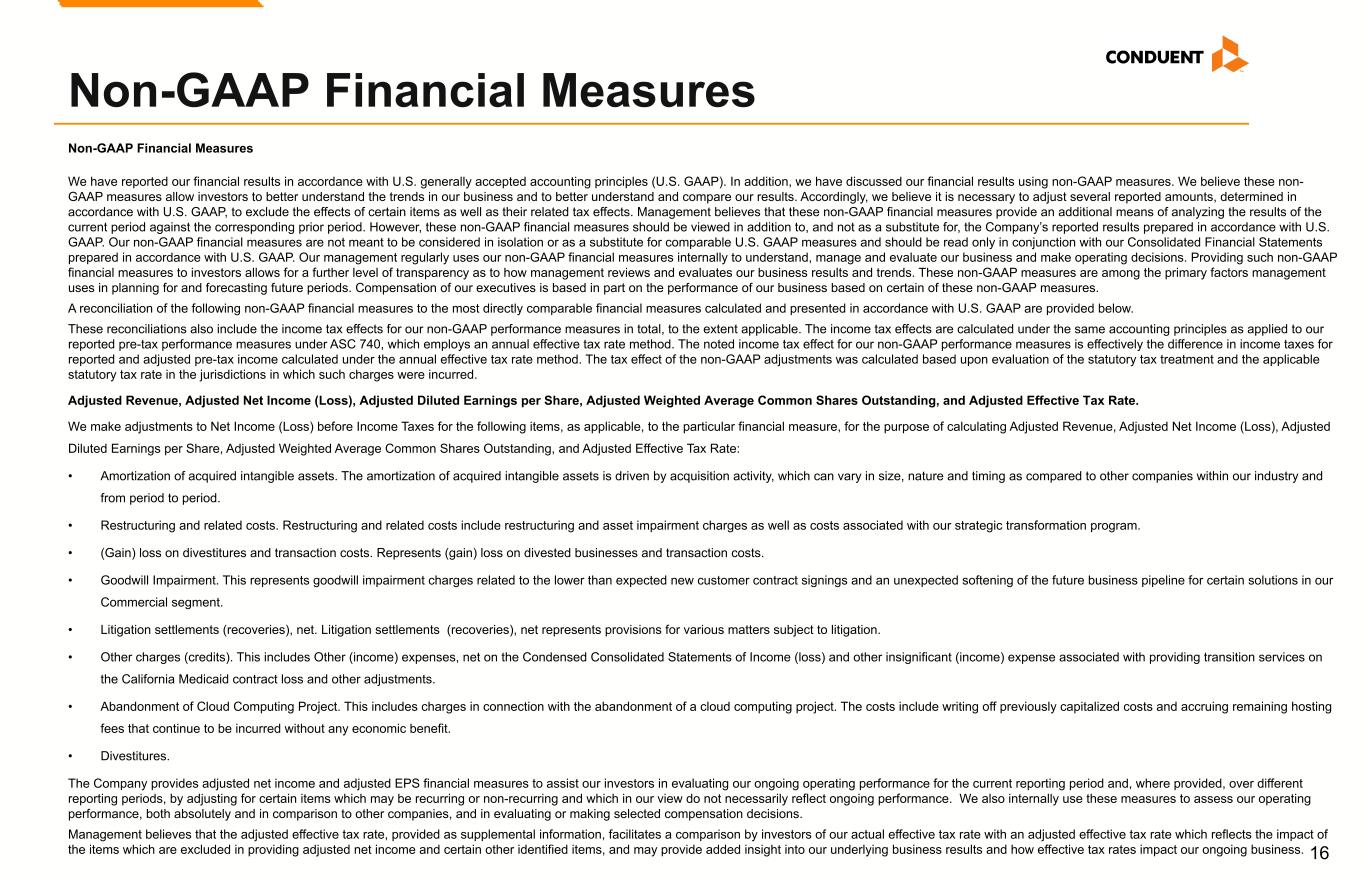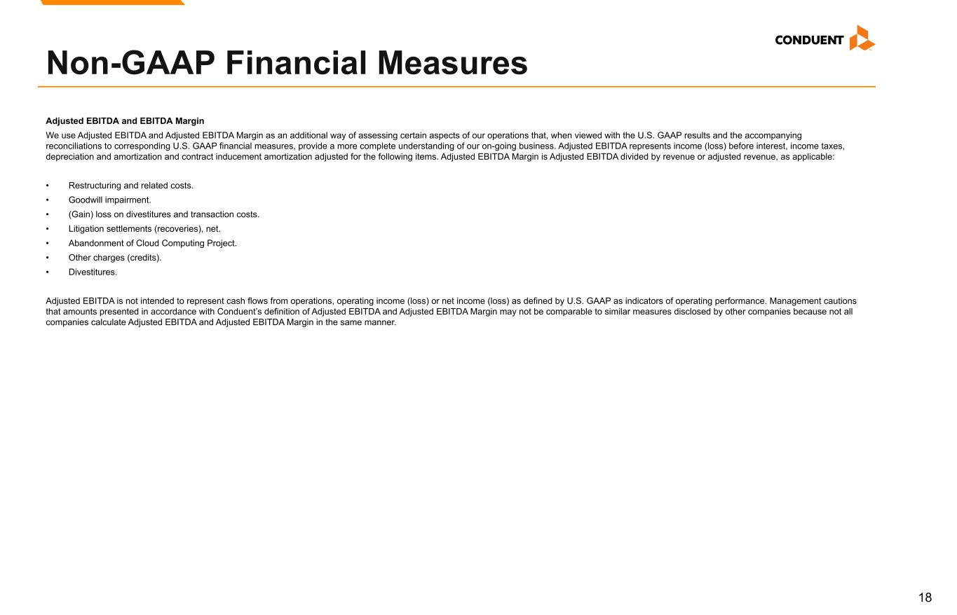 Conduent's total liquidity position is strong with over $1.1 billion in cash and available revolving credit facility capacity. Cash Flow from Operating Activities was $51 million and Adjusted Free Cash Flow was $24 million for the quarter.