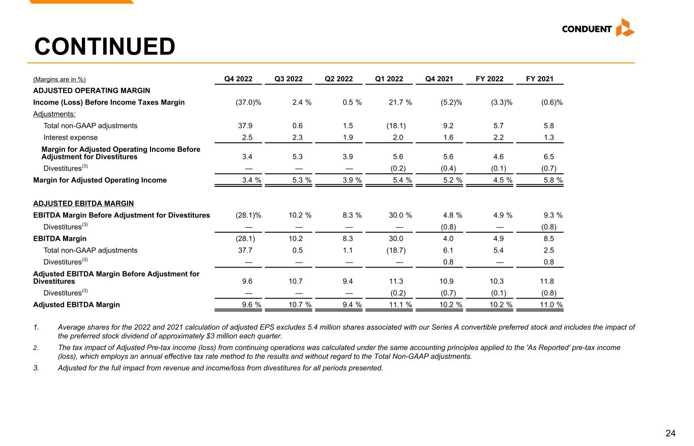(1)Average shares for the 2022 and 2021 calculation of adjusted EPS excludes 5.4 million shares associated with our Series A convertible preferred stock and includes the impact of preferred stock dividend of approximately $3.0 million and $10 million for the three months and years ended December 31, 2022 and 2021, respectively.