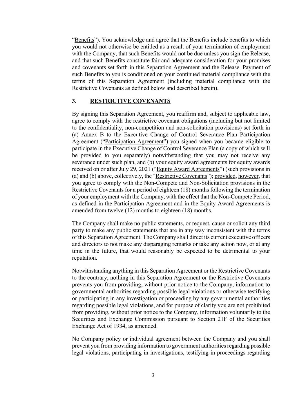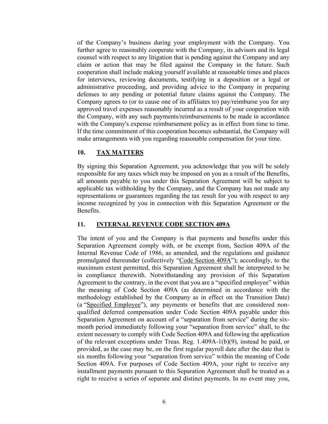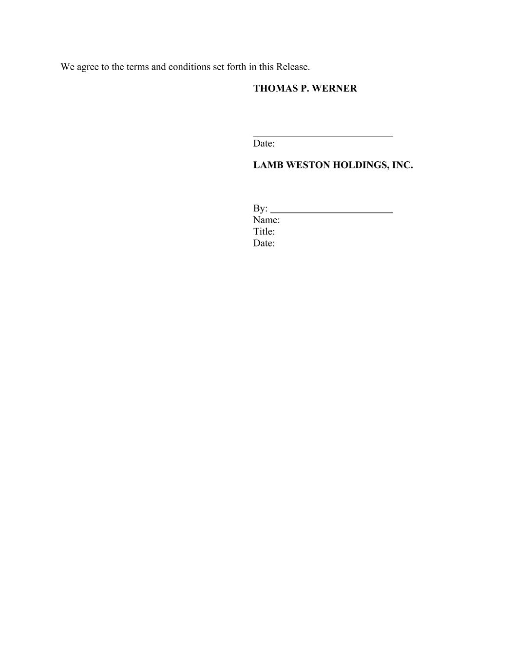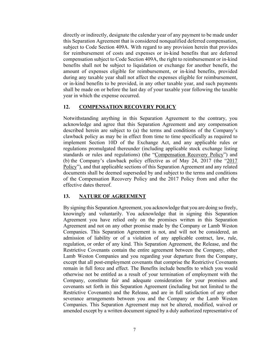 ヴェルナー氏の特別顧問としての職務に対し、報酬委員会は年俸55万ドルを基本給とし、2025年度のAIPに基づく賞与を基本給の100%(当該年度の混合ベース)を目標水準とし、ヴェルナー氏の未払い株式報酬の全額を権利確定することを承認した。また、ヴェルナー氏は、守秘義務、解雇後18ヶ月の競業避止義務および非勧誘義務を含む制限的誓約義務を引き続き遵守することを条件として、有効な基本報酬契約に規定された「通常の退職」権利確定条項に記載されているとおり、ヴェルナー氏の未払い株式報酬の全額を権利確定する。ヴェルナー氏の業績株報奨(「PSA」)が支払われる場合は、各PSAの該当業績サイクル終了時の報酬委員会による最終業績認定に基づく。ヴェルナー氏は、ラム・ウェストンの業績に基づき、2025年度のAIP報奨を受ける資格を有し、当該年度のそれぞれの勤務に適用される目標報奨額に基づいて比例配分されます。ヴェルナー氏には、2026年度のAIPまたは新規LTIP報奨の資格はありません。ヴェルナー氏は、諮問期間中も引き続き当社の福利厚生プログラムに参加する資格を有する。ヴェルナー氏の報酬条件は、2024年12月23日付の移行および分離契約(以下「ヴェルナー契約」)に規定されており、その写しは別紙10.2として添付されています。ヴェルナー契約の前述の説明は完全を意図するものではなく、参照により本書に組み込まれるヴェルナー契約の全文を参照することにより、その全体が限定されるものとする。