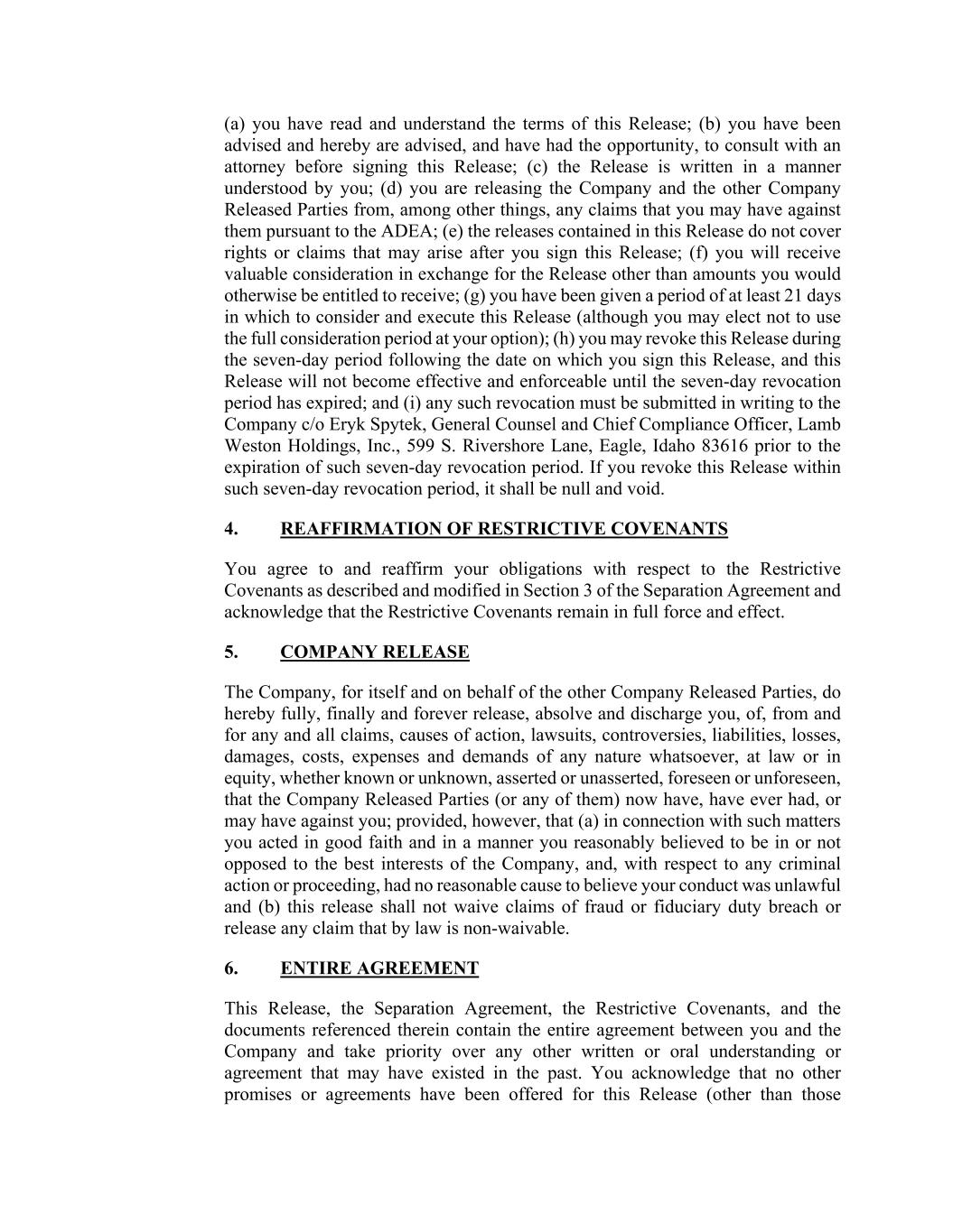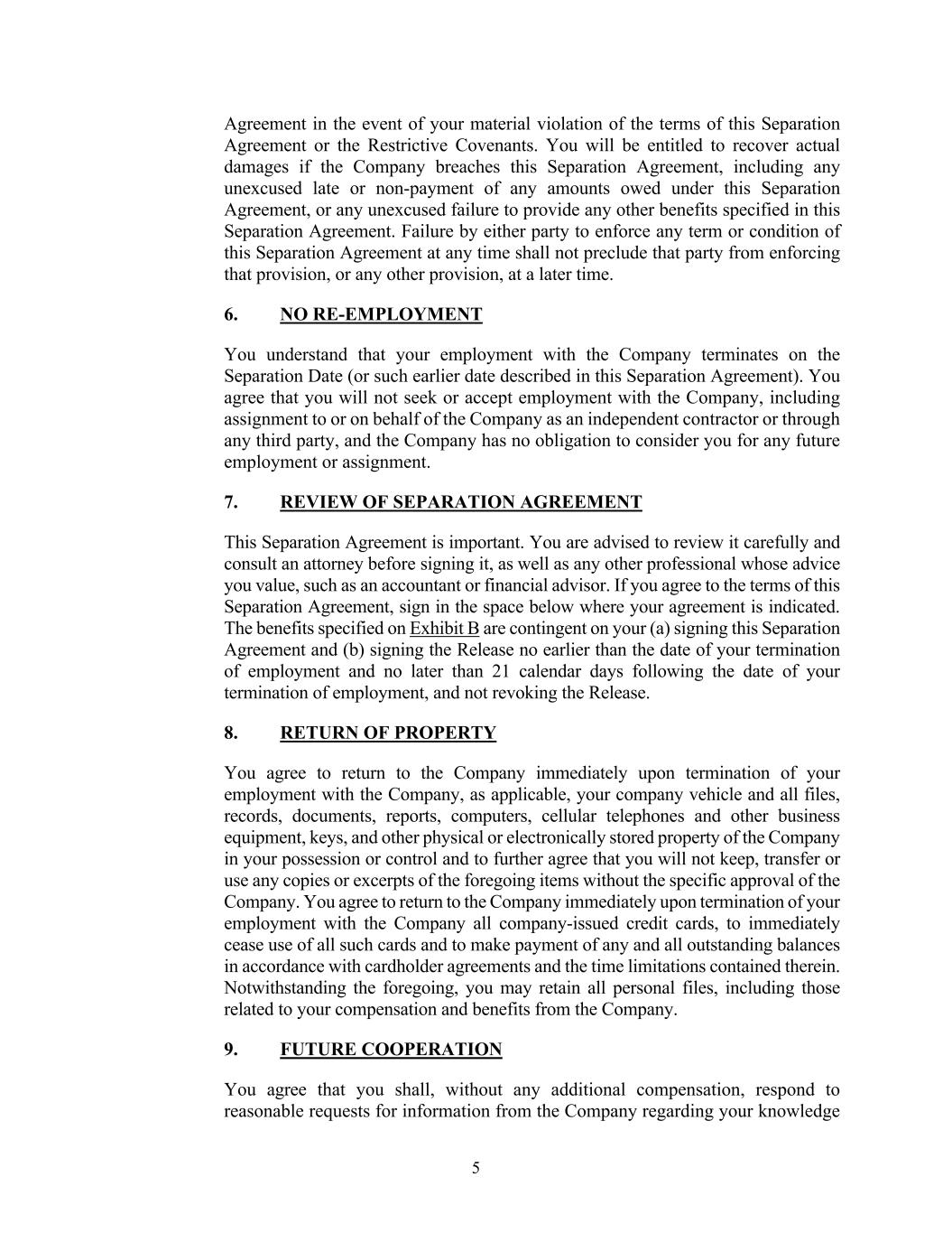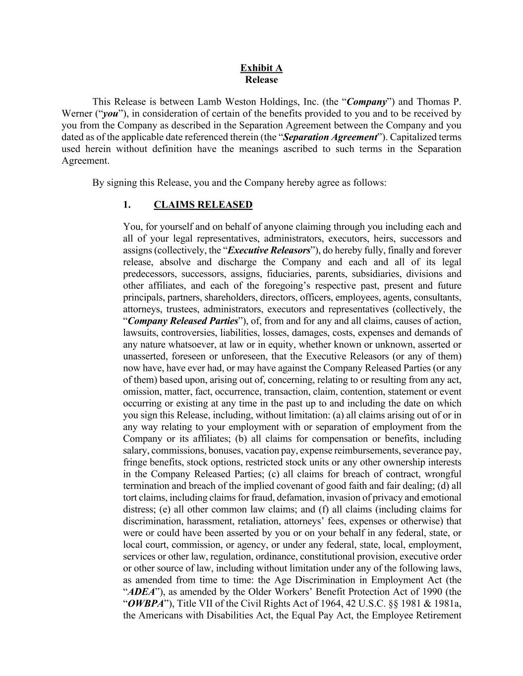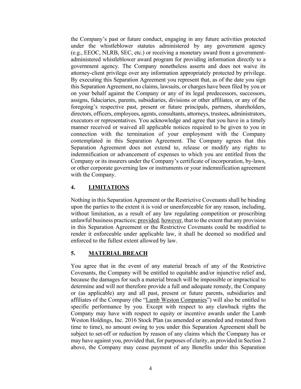ヴェルナー氏の特別顧問としての職務に対し、報酬委員会は年俸55万ドルを基本給とし、2025年度のAIPに基づく賞与を基本給の100%(当該年度の混合ベース)を目標水準とし、ヴェルナー氏の未払い株式報酬の全額を権利確定することを承認した。また、ヴェルナー氏は、守秘義務、解雇後18ヶ月の競業避止義務および非勧誘義務を含む制限的誓約義務を引き続き遵守することを条件として、有効な基本報酬契約に規定された「通常の退職」権利確定条項に記載されているとおり、ヴェルナー氏の未払い株式報酬の全額を権利確定する。ヴェルナー氏の業績株報奨(「PSA」)が支払われる場合は、各PSAの該当業績サイクル終了時の報酬委員会による最終業績認定に基づく。ヴェルナー氏は、ラム・ウェストンの業績に基づき、2025年度のAIP報奨を受ける資格を有し、当該年度のそれぞれの勤務に適用される目標報奨額に基づいて比例配分されます。ヴェルナー氏には、2026年度のAIPまたは新規LTIP報奨の資格はありません。ヴェルナー氏は、諮問期間中も引き続き当社の福利厚生プログラムに参加する資格を有する。ヴェルナー氏の報酬条件は、2024年12月23日付の移行および分離契約(以下「ヴェルナー契約」)に規定されており、その写しは別紙10.2として添付されています。ヴェルナー契約の前述の説明は完全を意図するものではなく、参照により本書に組み込まれるヴェルナー契約の全文を参照することにより、その全体が限定されるものとする。