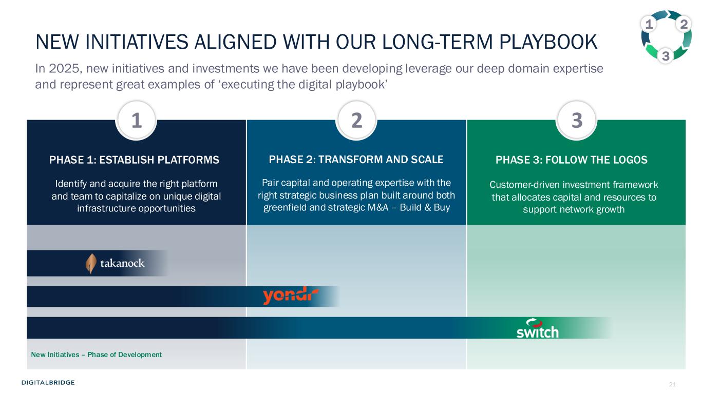 21 Pair capital and operating expertise with the right strategic business plan built around both greenfield and strategic M&A – Build & Buy Customer-driven investment framework that allocates capital and resources to support network growth PHASE 1: ESTABLISH PLATFORMS PHASE 2: TRANSFORM AND SCALE PHASE 3: FOLLOW THE LOGOS Identify and acquire the right platform and team to capitalize on unique digital infrastructure opportunities NEW INITIATIVES ALIGNED WITH OUR LONG-TERM PLAYBOOK In 2025, new initiatives and investments we have been developing leverage our deep domain expertise and represent great examples of ‘executing the digital playbook’ 1 2 3 1 2 3 New Initiatives – Phase of Development