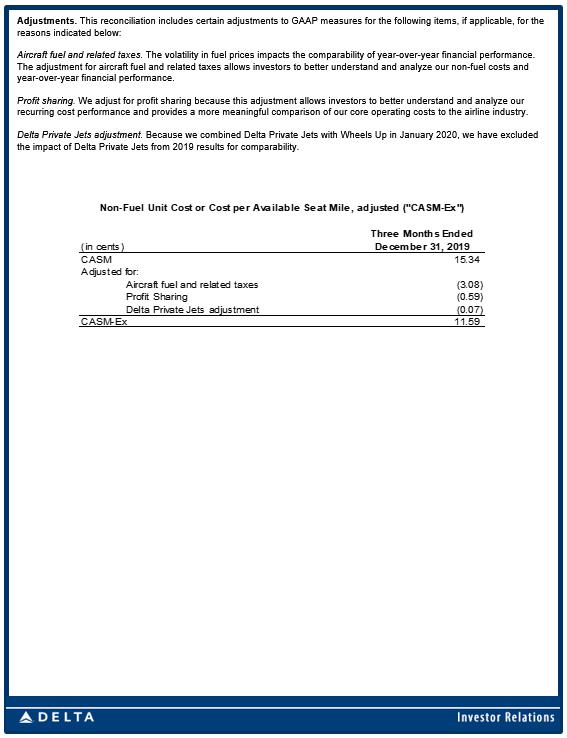 | • | 2023年2月にデルタ航空の従業員に支給される見込みの利益分配金2億9100万ドルを累計で計上。 | |