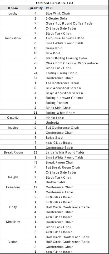 Schedule of Furniture