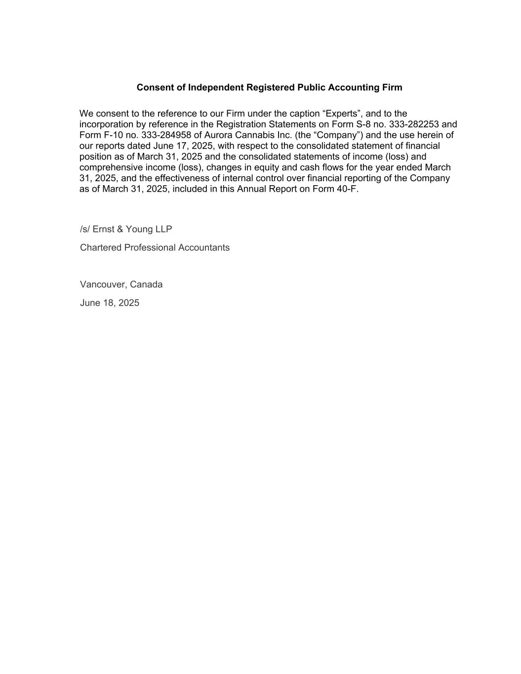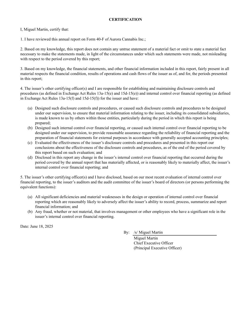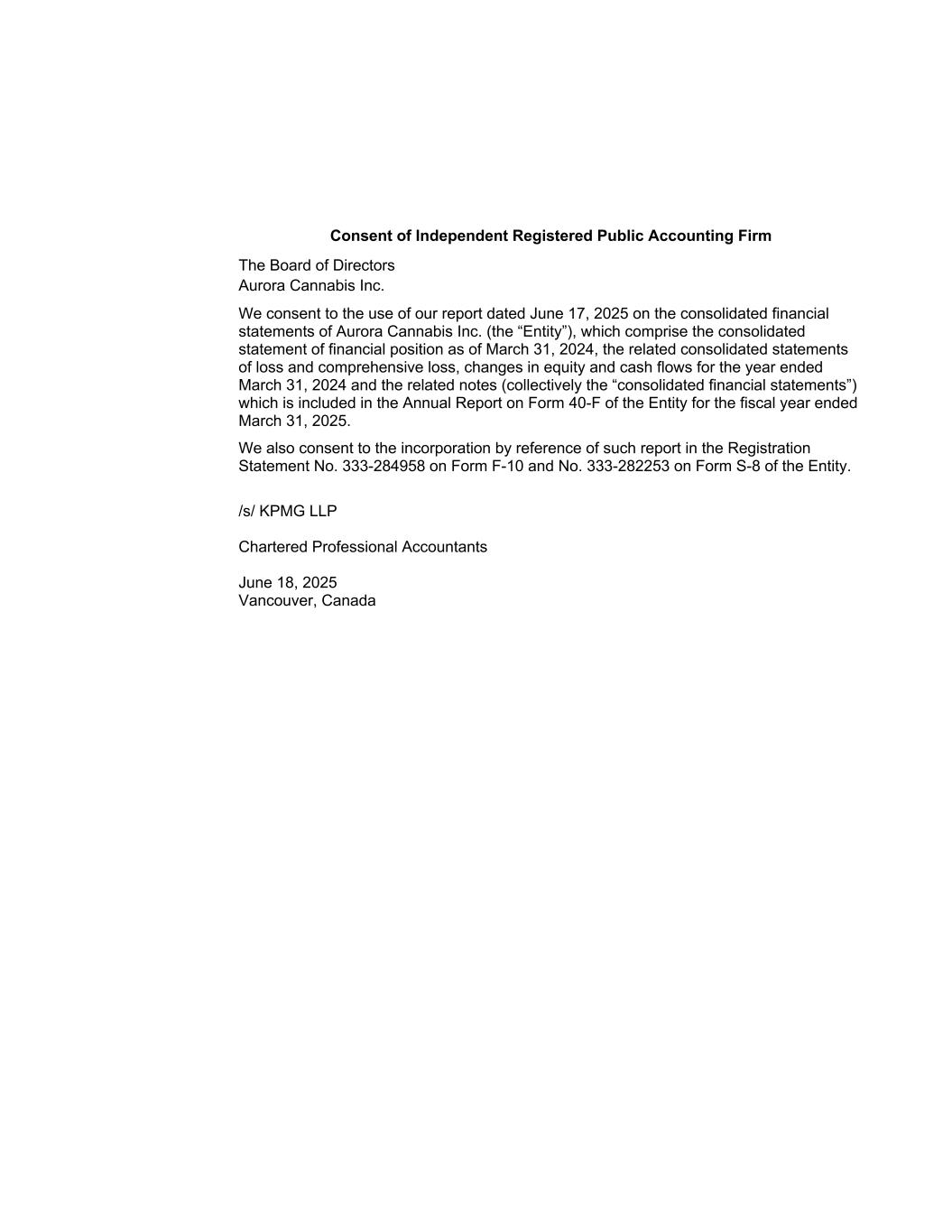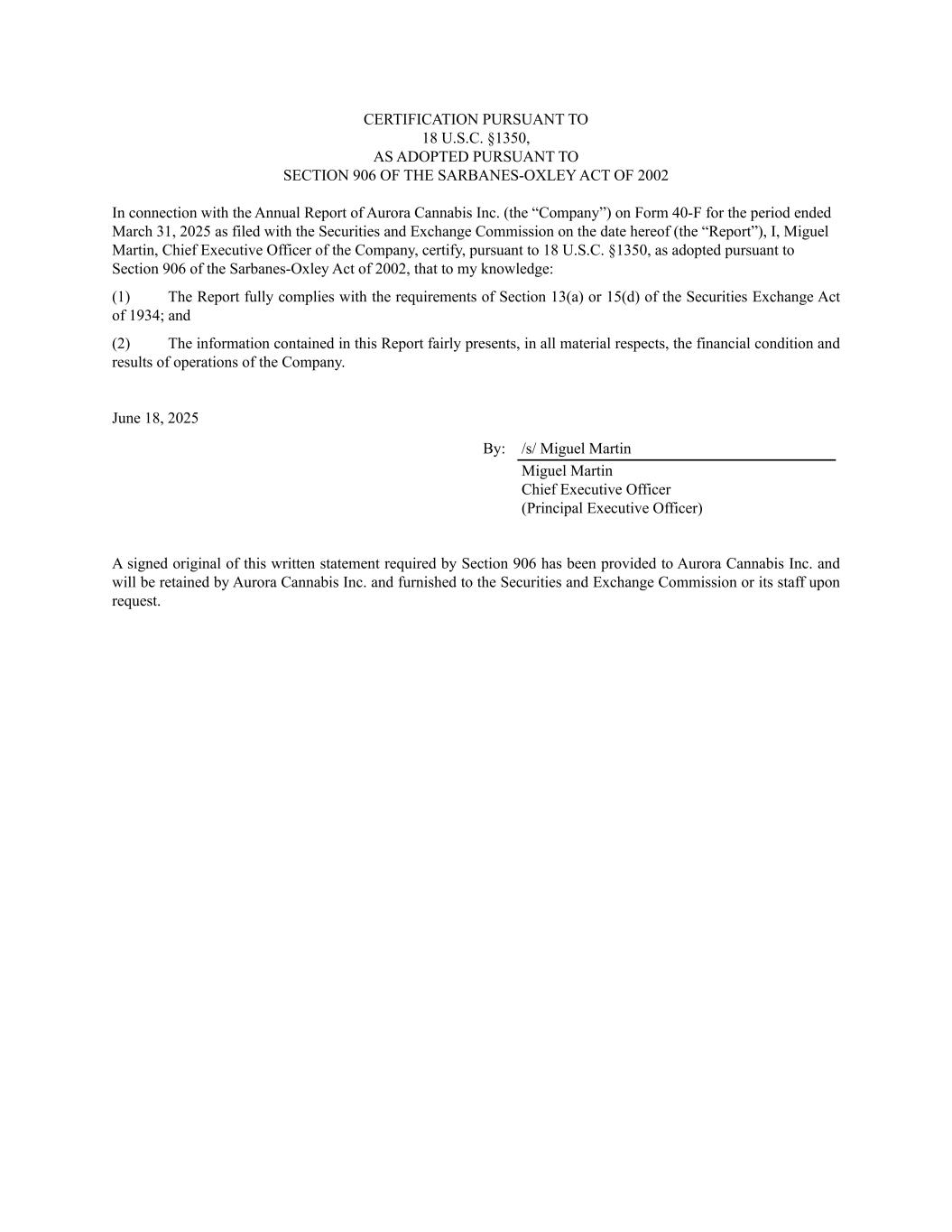 | Date: June 18, 2025 | AURORA CANNABIS INC. |