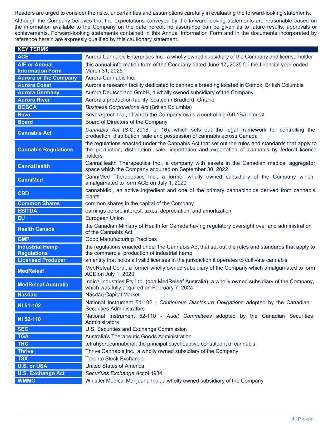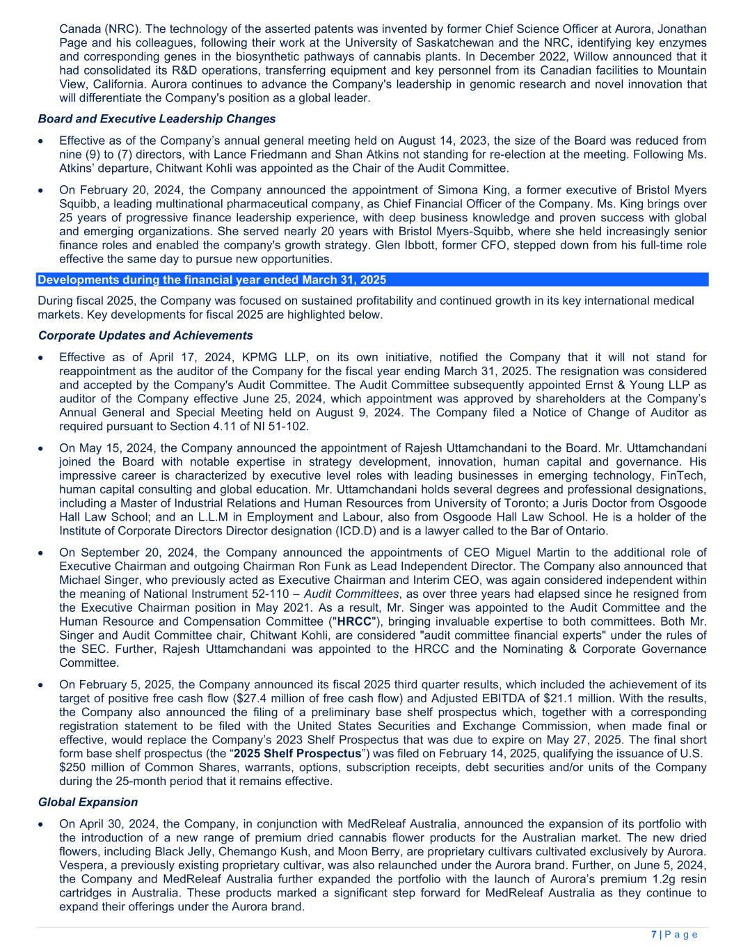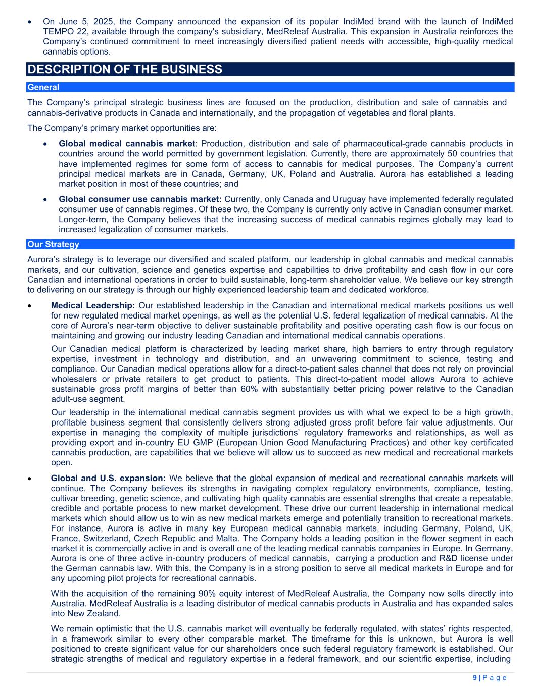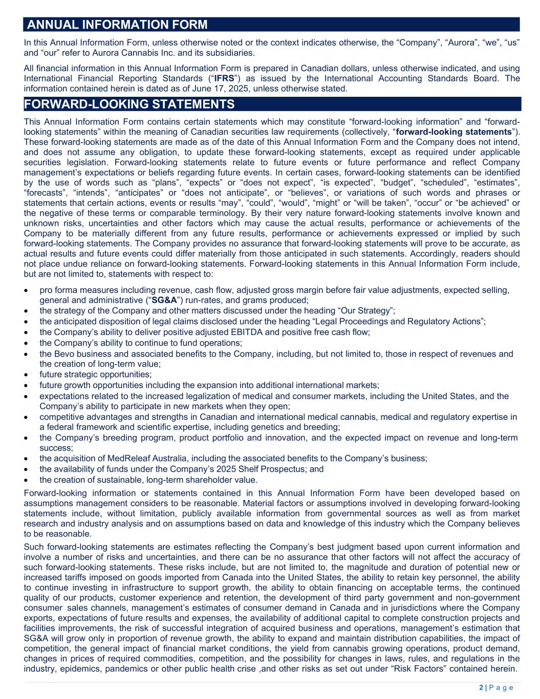| Date: June 18, 2025 | AURORA CANNABIS INC. |