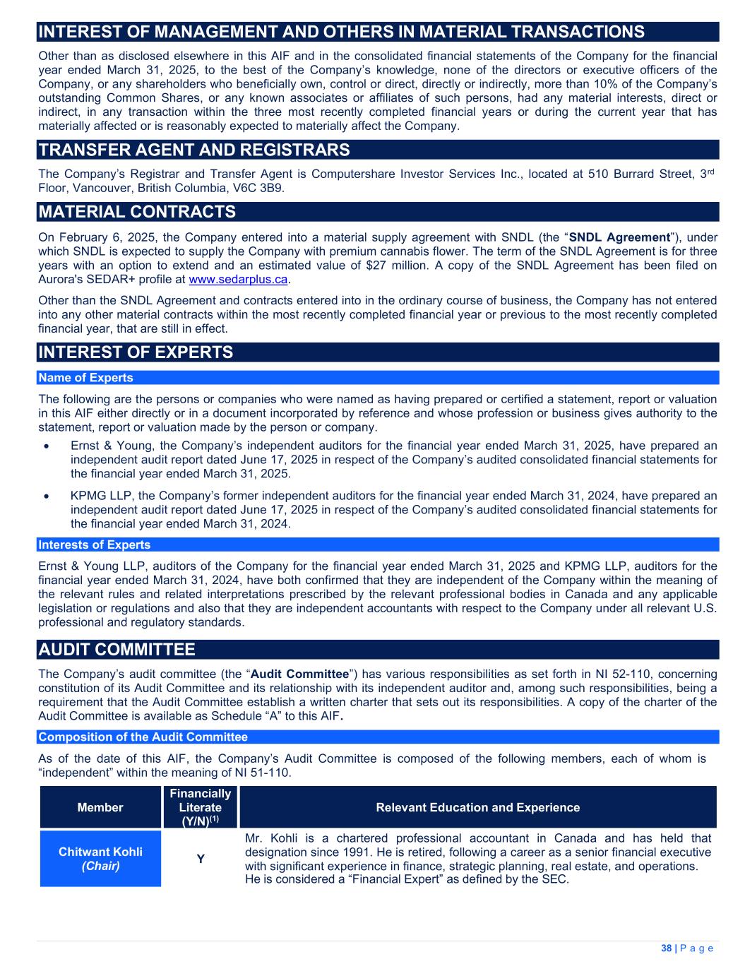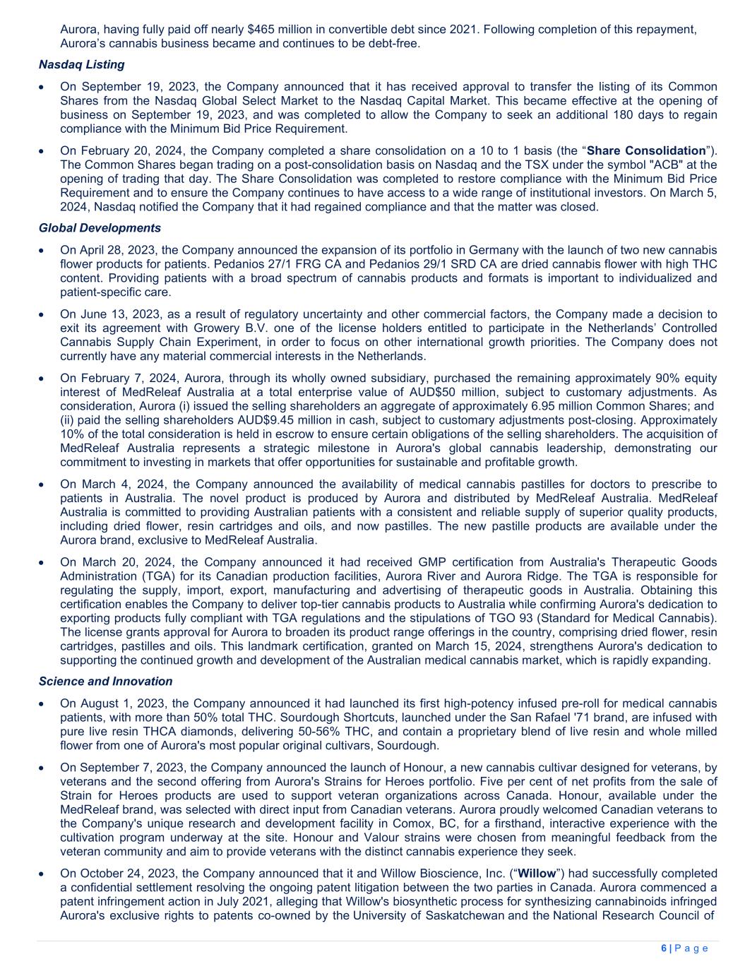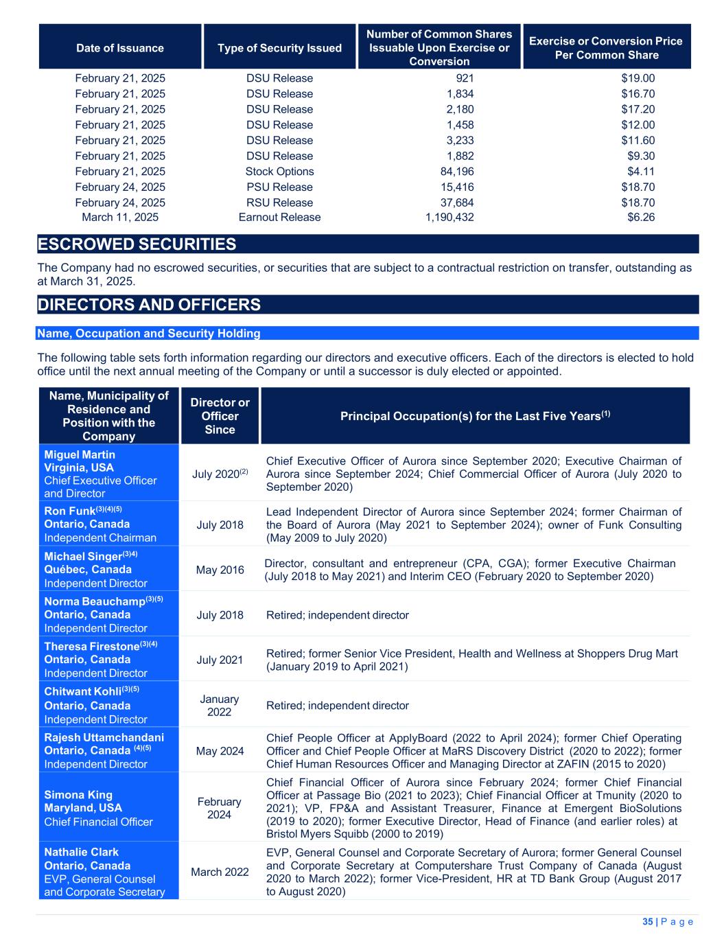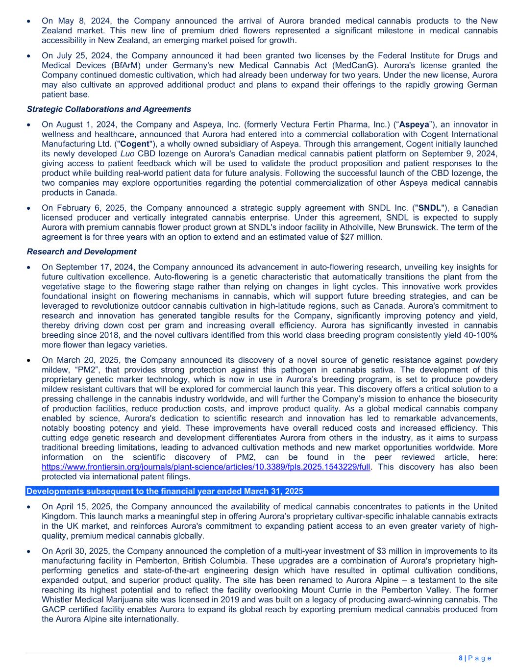 | Date: June 18, 2025 | AURORA CANNABIS INC. |