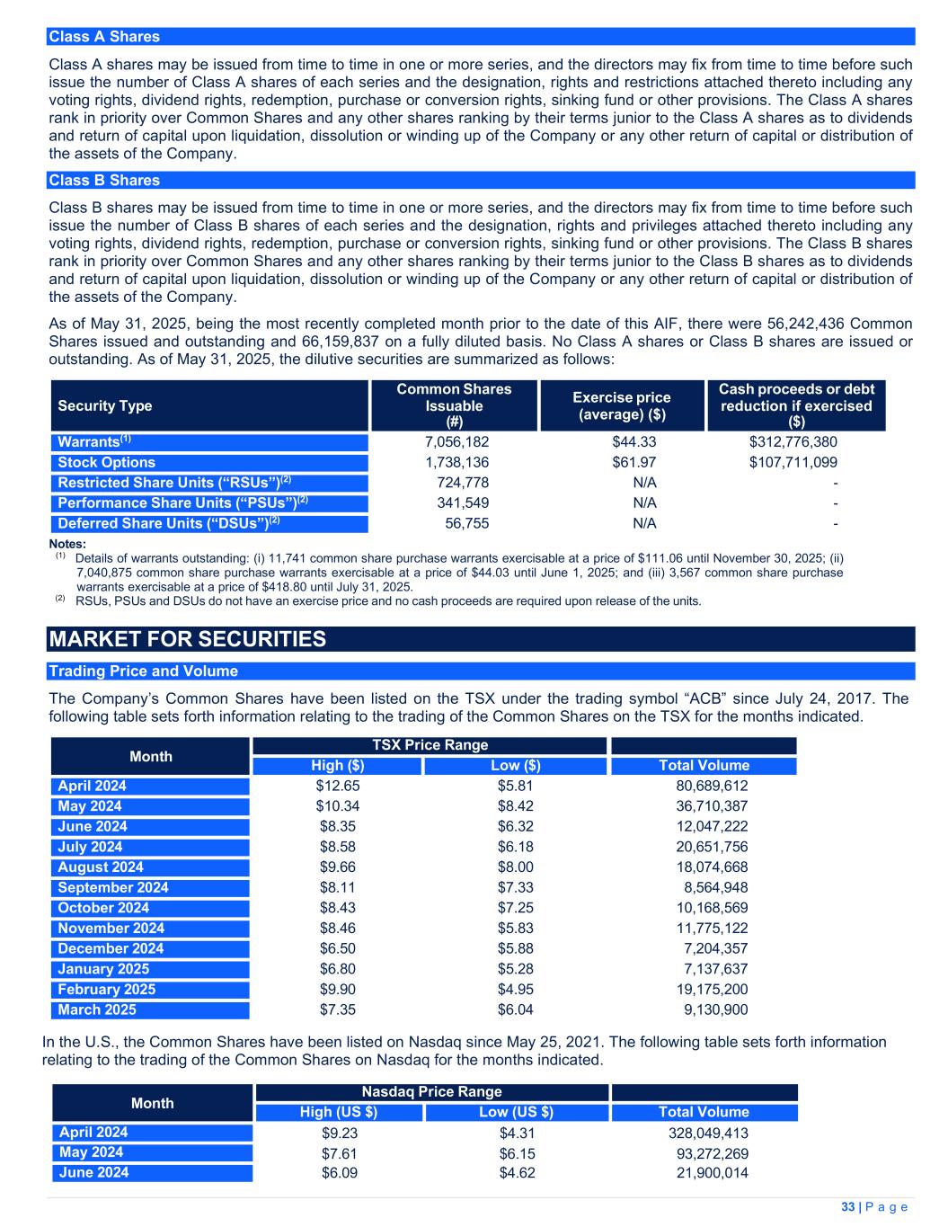 | Issued and outstanding Common Shares | 56,246,404 | ||||