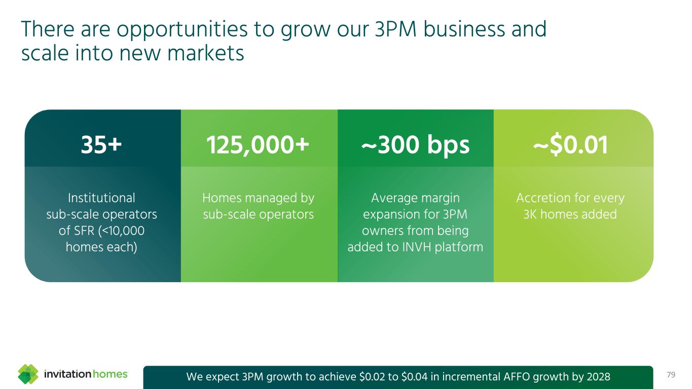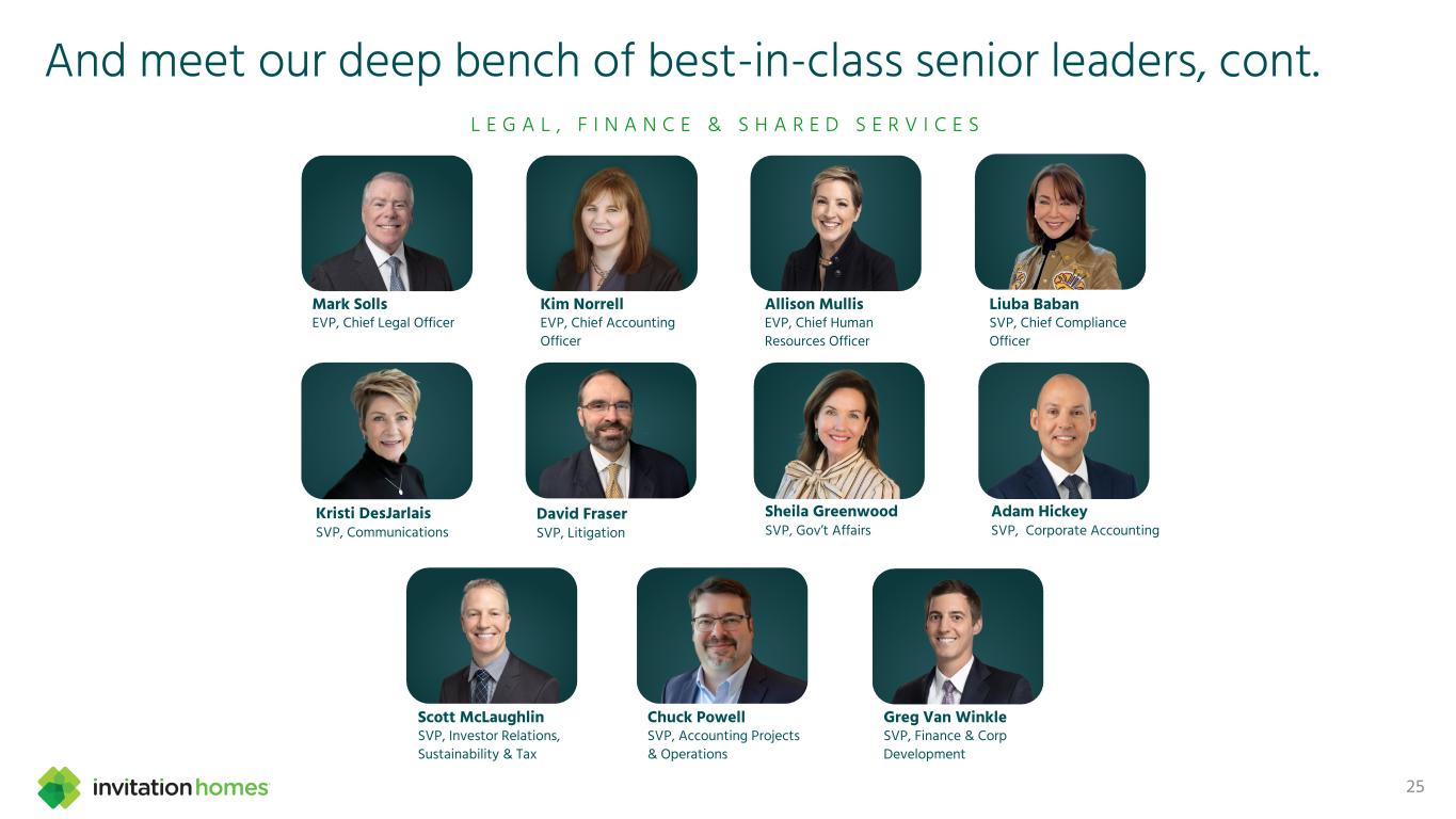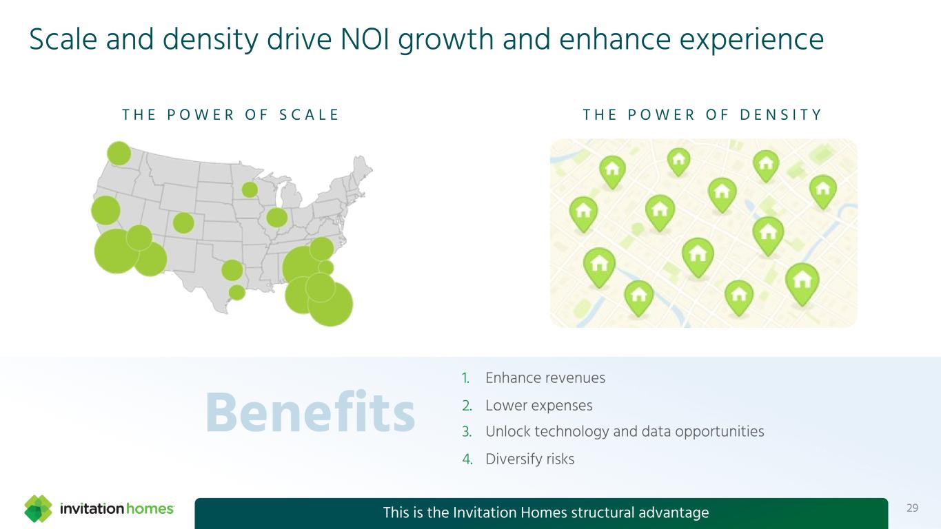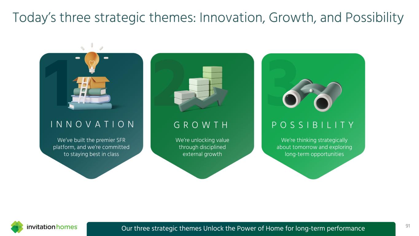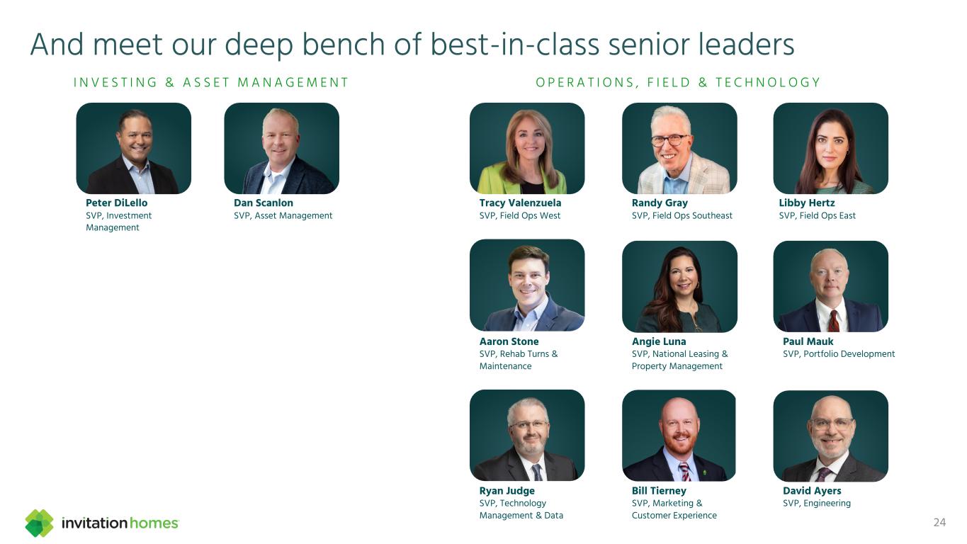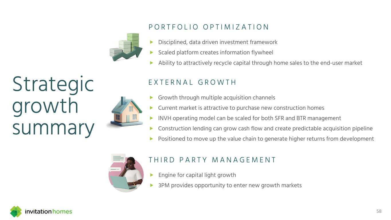 This presentation contains forward-looking statements This presentation contains forward-looking statements within the meaning of Section 27A of the Securities Act of 1933, as amended, and Section 21E of the Securities Exchange Act of 1934, as amended (the “Exchange Act”), which include, but are not limited to, statements related to our expectations regarding the performance of our business, our financial results, our liquidity and capital resources, and other non-historical statements. In some cases, you can identify these forward-looking statements by the use of words such as “outlook,” “guidance,” “believes,” “expects,” “potential,” “continues,” “may,” “will,” “should,” “could,” “seeks,” “projects,” “predicts,” “intends,” “plans,” “estimates,” “anticipates,” or the negative version of these words or other comparable words. Such forward-looking statements are subject to various risks and uncertainties that may impact our financial condition, results of operations, cash flows, business, associates, and residents, including, among others, risks inherent to the single-family rental industry and our business model, macroeconomic factors beyond our control, competition in identifying and acquiring properties, competition in the leasing market for quality residents, increasing property taxes, homeowners’ association (“HOA”) fees and insurance costs, poor resident selection and defaults and non-renewals by our residents, our dependence on third parties for key services, risks related to the evaluation of properties, performance of our information technology systems, development and use of artificial intelligence, risks related to our indebtedness, risks related to the potential negative impact of fluctuating global and United States economic conditions (including inflation and imposition or increase of tariffs and trade restrictions by the United States and foreign countries), uncertainty in financial markets (including as a result of events affecting financial institutions), geopolitical tensions, natural disasters, climate change, and public health crises. Accordingly, there are or will be important factors that could cause actual outcomes or results to differ materially from those indicated in these statements. We believe these factors include, but are not limited to, those described under Part I. Item 1A. “Risk Factors” in our Annual Report on Form 10-K for the year ended December 31, 2024 (the “Annual Report”), as such factors may be updated from time to time in our periodic filings with the Securities and Exchange Commission (the “SEC”), which are accessible on the SEC’s website at www.sec.gov. These factors should not be construed as exhaustive and should be read in conjunction with the other cautionary statements that are included in this presentation, in the Annual Report, and in our other periodic filings. The forward-looking statements speak only as of the date of this presentation, and we expressly disclaim any obligation or undertaking to publicly update or review any forward-looking statement, whether as a result of new information, future developments or otherwise, except to the extent otherwise required by law. 1 This presentation contains non-GAAP financial measures and estimates In addition to financial measures prepared in accordance with United States generally accepted accounting principles (“GAAP”), this presentation includes certain non-GAAP financial measures such as EBITDAre, Core FFO, AFFO, NOI, and others. These non-GAAP measures have limitations as analytical tools and you should not consider them in isolation or as a substitute for the most directly comparable financial measures prepared in accordance with GAAP. There are a number of limitations related to the use of these non-GAAP financial measures versus their most directly comparable GAAP equivalents. Other companies, including companies in our industry, may calculate non-GAAP financial measures differently or may use other measures to evaluate their performance, all of which could reduce the usefulness of these non-GAAP financial measures as tools for comparison. For definitions, additional information, and reconciliations of non-GAAP financial information included in this presentation, see the Appendix to this presentation. You are urged to review the reconciliation of these non-GAAP financial measures to the most directly comparable GAAP financial measures set forth in the Appendix, and not to rely on any single financial measure to evaluate our business. In addition, this presentation includes estimated future AFFO growth levels that are based on current information and assumptions available to us. Arriving at such amounts requires us to make a number of assumptions that may not be true. These estimates reflect long-term targets and do not constitute guidance for any period. There are a number of circumstances in the future that could greatly impact actual results, given circumstances that are not within our control, including the factors set forth under “Forward- Looking Statements.” These targets should not be relied upon when making an investment decision. We do not provide a reconciliation of these targets to the comparable GAAP financial measure, as it cannot be provided without unreasonable effort because we are unable to reasonably predict certain items contained in the GAAP measures, including non- recurring and infrequent items that are not indicative of our ongoing operations. These items are uncertain, depend on various factors, and could have a material impact on our GAAP results for the target period.