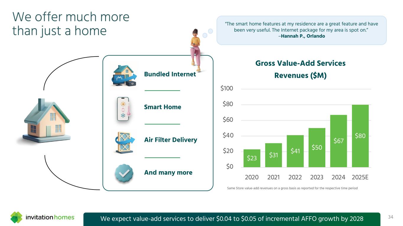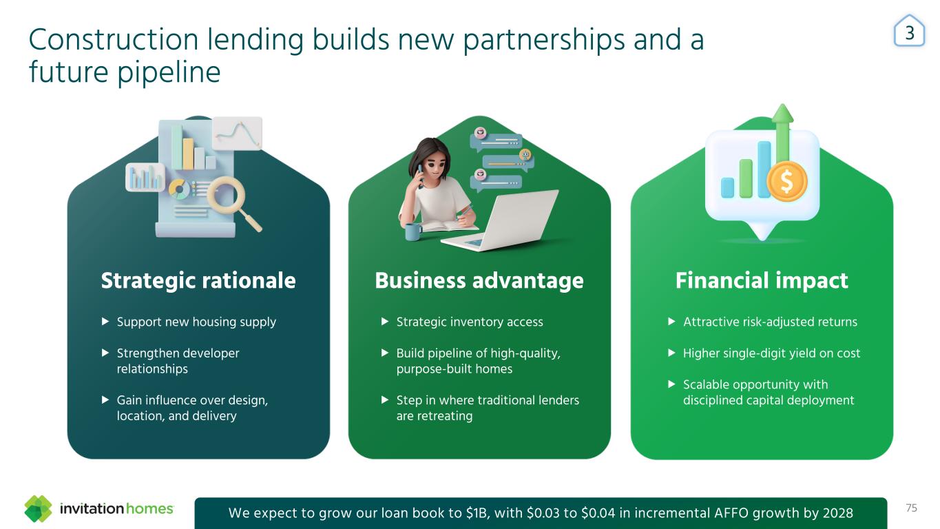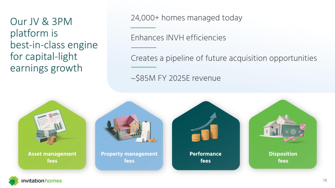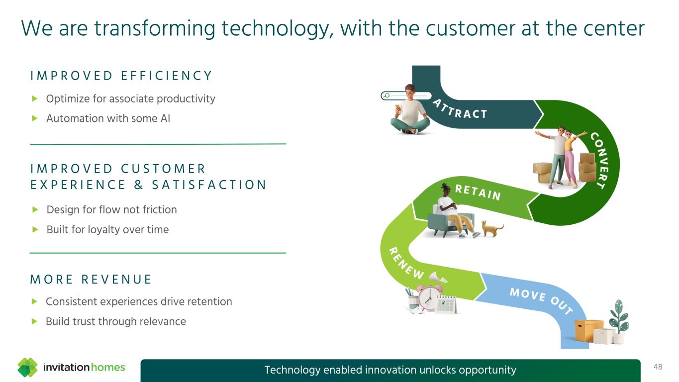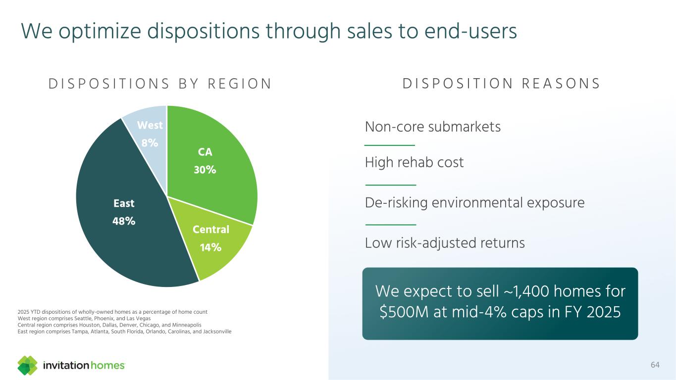 This presentation contains forward-looking statements This presentation contains forward-looking statements within the meaning of Section 27A of the Securities Act of 1933, as amended, and Section 21E of the Securities Exchange Act of 1934, as amended (the “Exchange Act”), which include, but are not limited to, statements related to our expectations regarding the performance of our business, our financial results, our liquidity and capital resources, and other non-historical statements. In some cases, you can identify these forward-looking statements by the use of words such as “outlook,” “guidance,” “believes,” “expects,” “potential,” “continues,” “may,” “will,” “should,” “could,” “seeks,” “projects,” “predicts,” “intends,” “plans,” “estimates,” “anticipates,” or the negative version of these words or other comparable words. Such forward-looking statements are subject to various risks and uncertainties that may impact our financial condition, results of operations, cash flows, business, associates, and residents, including, among others, risks inherent to the single-family rental industry and our business model, macroeconomic factors beyond our control, competition in identifying and acquiring properties, competition in the leasing market for quality residents, increasing property taxes, homeowners’ association (“HOA”) fees and insurance costs, poor resident selection and defaults and non-renewals by our residents, our dependence on third parties for key services, risks related to the evaluation of properties, performance of our information technology systems, development and use of artificial intelligence, risks related to our indebtedness, risks related to the potential negative impact of fluctuating global and United States economic conditions (including inflation and imposition or increase of tariffs and trade restrictions by the United States and foreign countries), uncertainty in financial markets (including as a result of events affecting financial institutions), geopolitical tensions, natural disasters, climate change, and public health crises. Accordingly, there are or will be important factors that could cause actual outcomes or results to differ materially from those indicated in these statements. We believe these factors include, but are not limited to, those described under Part I. Item 1A. “Risk Factors” in our Annual Report on Form 10-K for the year ended December 31, 2024 (the “Annual Report”), as such factors may be updated from time to time in our periodic filings with the Securities and Exchange Commission (the “SEC”), which are accessible on the SEC’s website at www.sec.gov. These factors should not be construed as exhaustive and should be read in conjunction with the other cautionary statements that are included in this presentation, in the Annual Report, and in our other periodic filings. The forward-looking statements speak only as of the date of this presentation, and we expressly disclaim any obligation or undertaking to publicly update or review any forward-looking statement, whether as a result of new information, future developments or otherwise, except to the extent otherwise required by law. 1 This presentation contains non-GAAP financial measures and estimates In addition to financial measures prepared in accordance with United States generally accepted accounting principles (“GAAP”), this presentation includes certain non-GAAP financial measures such as EBITDAre, Core FFO, AFFO, NOI, and others. These non-GAAP measures have limitations as analytical tools and you should not consider them in isolation or as a substitute for the most directly comparable financial measures prepared in accordance with GAAP. There are a number of limitations related to the use of these non-GAAP financial measures versus their most directly comparable GAAP equivalents. Other companies, including companies in our industry, may calculate non-GAAP financial measures differently or may use other measures to evaluate their performance, all of which could reduce the usefulness of these non-GAAP financial measures as tools for comparison. For definitions, additional information, and reconciliations of non-GAAP financial information included in this presentation, see the Appendix to this presentation. You are urged to review the reconciliation of these non-GAAP financial measures to the most directly comparable GAAP financial measures set forth in the Appendix, and not to rely on any single financial measure to evaluate our business. In addition, this presentation includes estimated future AFFO growth levels that are based on current information and assumptions available to us. Arriving at such amounts requires us to make a number of assumptions that may not be true. These estimates reflect long-term targets and do not constitute guidance for any period. There are a number of circumstances in the future that could greatly impact actual results, given circumstances that are not within our control, including the factors set forth under “Forward- Looking Statements.” These targets should not be relied upon when making an investment decision. We do not provide a reconciliation of these targets to the comparable GAAP financial measure, as it cannot be provided without unreasonable effort because we are unable to reasonably predict certain items contained in the GAAP measures, including non- recurring and infrequent items that are not indicative of our ongoing operations. These items are uncertain, depend on various factors, and could have a material impact on our GAAP results for the target period.