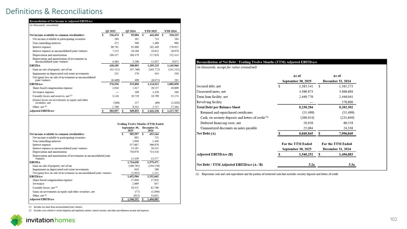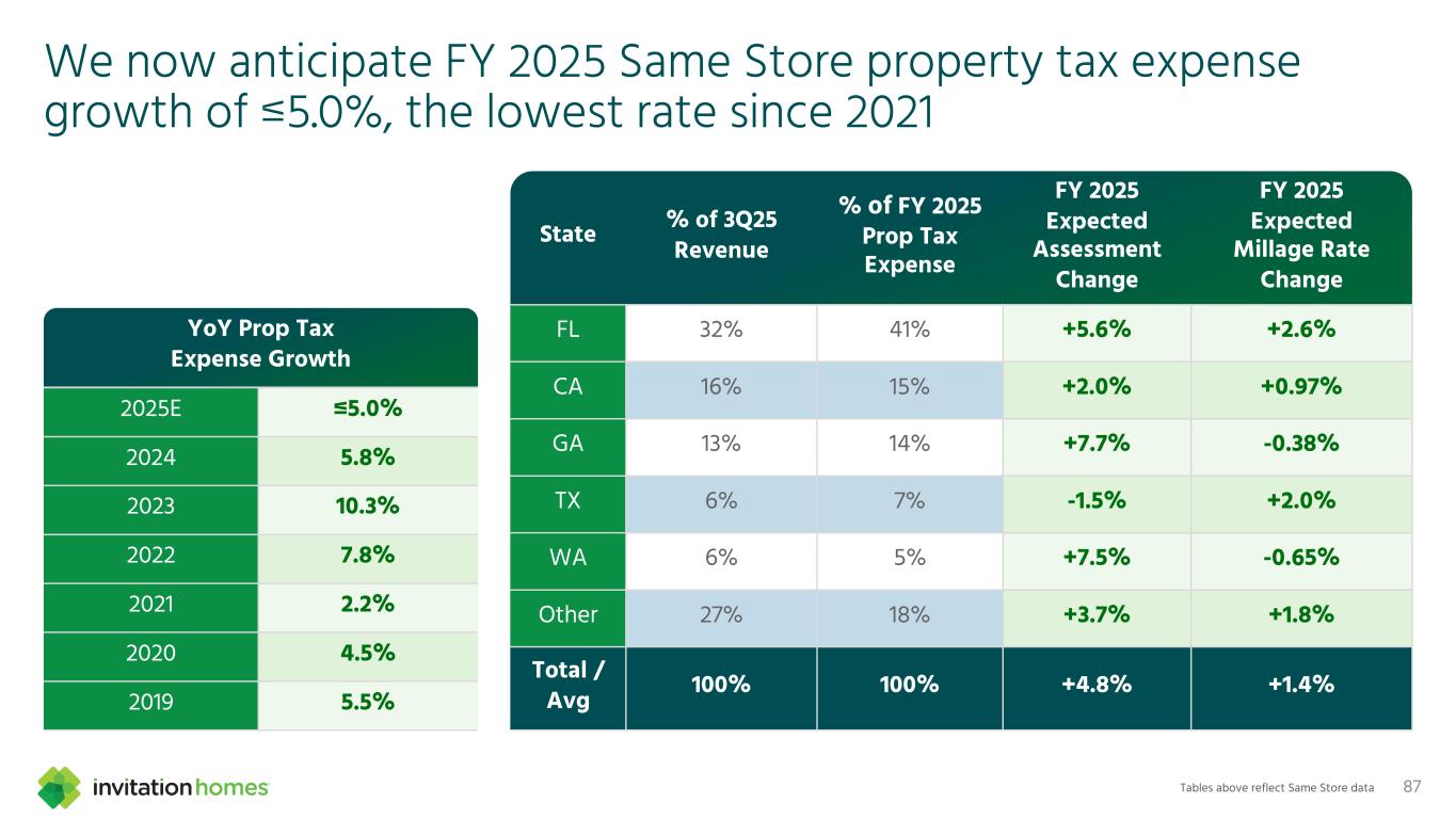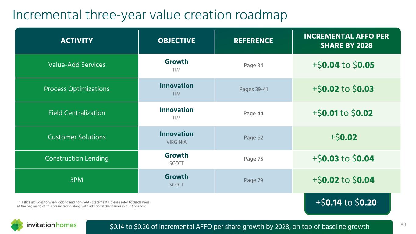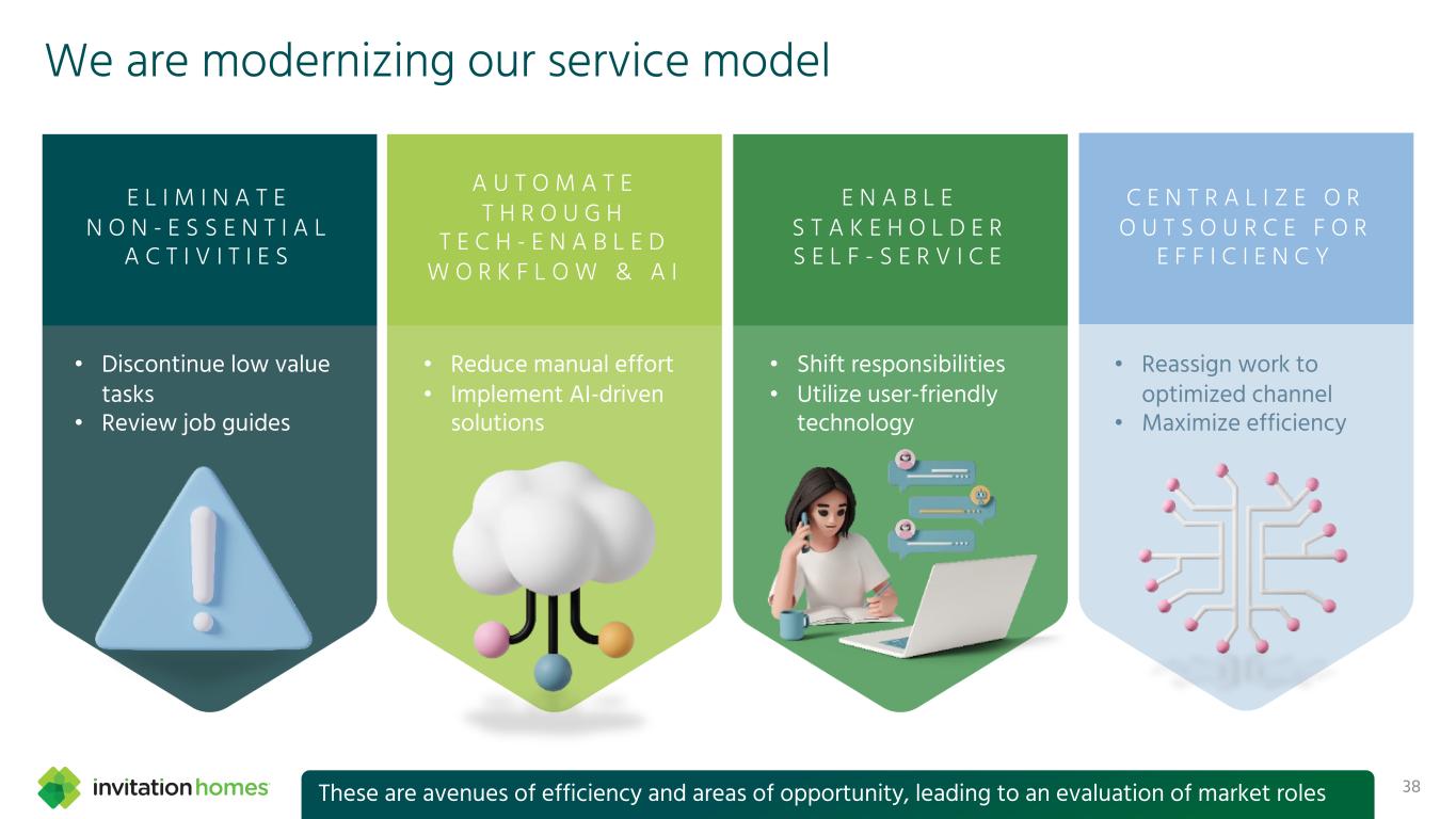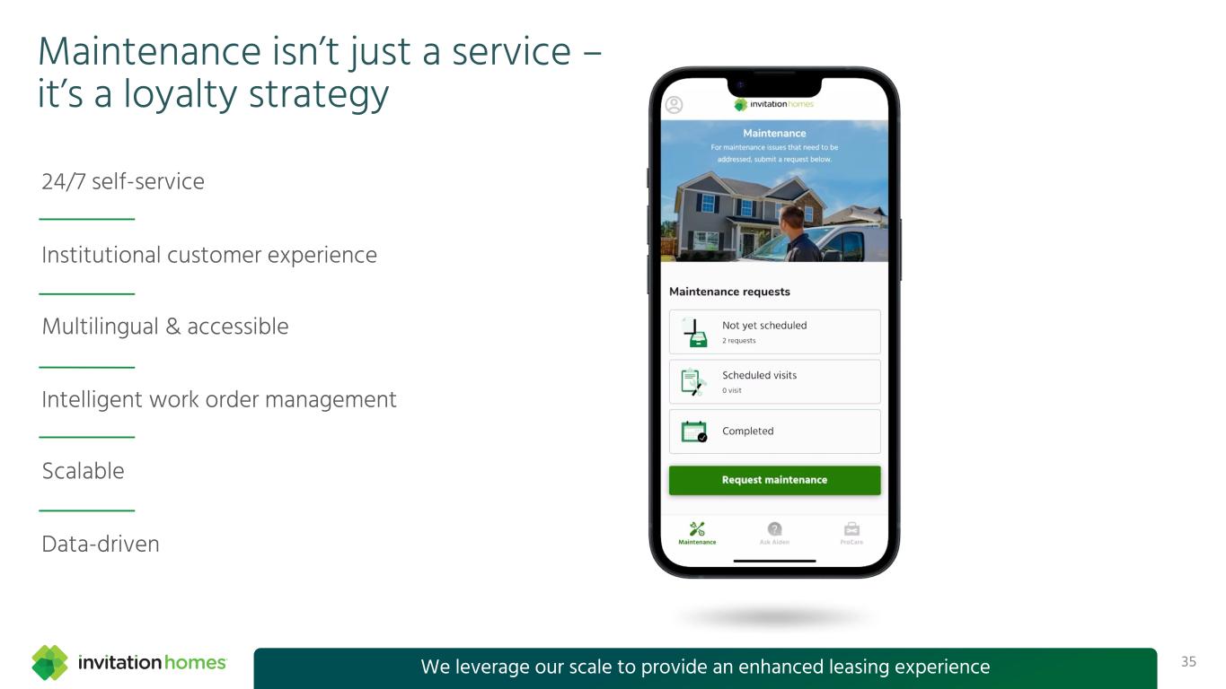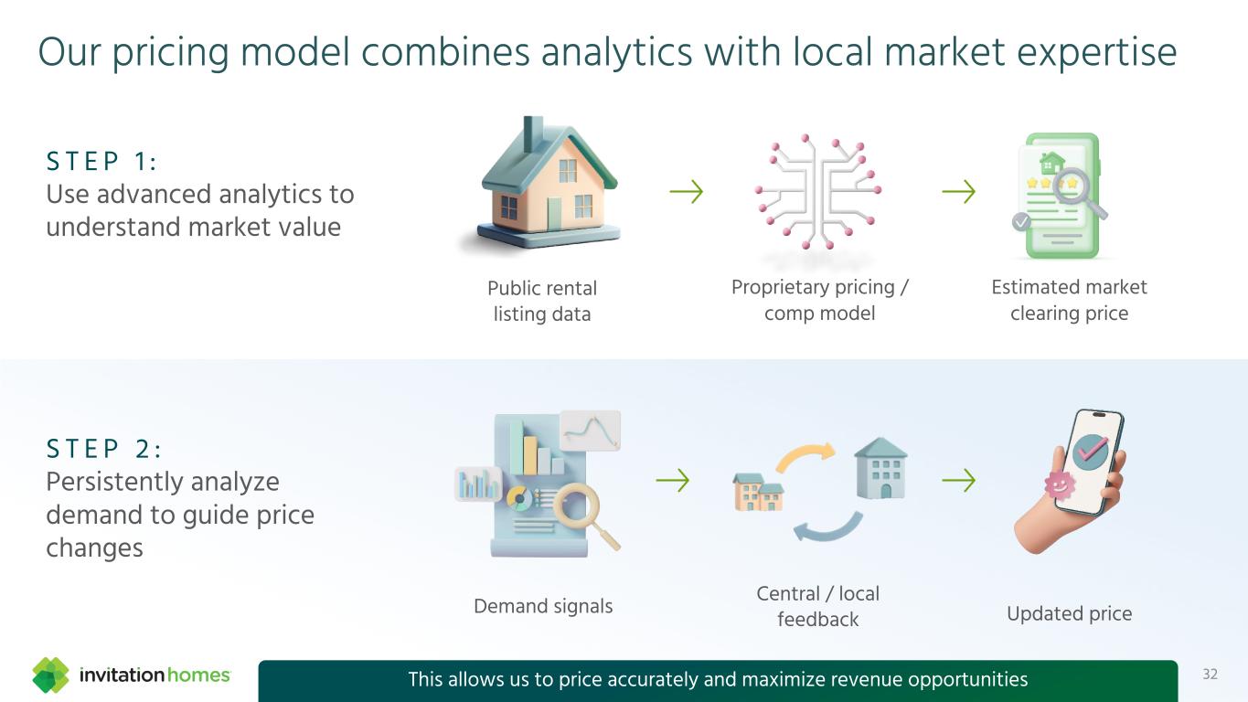 This presentation contains forward-looking statements This presentation contains forward-looking statements within the meaning of Section 27A of the Securities Act of 1933, as amended, and Section 21E of the Securities Exchange Act of 1934, as amended (the “Exchange Act”), which include, but are not limited to, statements related to our expectations regarding the performance of our business, our financial results, our liquidity and capital resources, and other non-historical statements. In some cases, you can identify these forward-looking statements by the use of words such as “outlook,” “guidance,” “believes,” “expects,” “potential,” “continues,” “may,” “will,” “should,” “could,” “seeks,” “projects,” “predicts,” “intends,” “plans,” “estimates,” “anticipates,” or the negative version of these words or other comparable words. Such forward-looking statements are subject to various risks and uncertainties that may impact our financial condition, results of operations, cash flows, business, associates, and residents, including, among others, risks inherent to the single-family rental industry and our business model, macroeconomic factors beyond our control, competition in identifying and acquiring properties, competition in the leasing market for quality residents, increasing property taxes, homeowners’ association (“HOA”) fees and insurance costs, poor resident selection and defaults and non-renewals by our residents, our dependence on third parties for key services, risks related to the evaluation of properties, performance of our information technology systems, development and use of artificial intelligence, risks related to our indebtedness, risks related to the potential negative impact of fluctuating global and United States economic conditions (including inflation and imposition or increase of tariffs and trade restrictions by the United States and foreign countries), uncertainty in financial markets (including as a result of events affecting financial institutions), geopolitical tensions, natural disasters, climate change, and public health crises. Accordingly, there are or will be important factors that could cause actual outcomes or results to differ materially from those indicated in these statements. We believe these factors include, but are not limited to, those described under Part I. Item 1A. “Risk Factors” in our Annual Report on Form 10-K for the year ended December 31, 2024 (the “Annual Report”), as such factors may be updated from time to time in our periodic filings with the Securities and Exchange Commission (the “SEC”), which are accessible on the SEC’s website at www.sec.gov. These factors should not be construed as exhaustive and should be read in conjunction with the other cautionary statements that are included in this presentation, in the Annual Report, and in our other periodic filings. The forward-looking statements speak only as of the date of this presentation, and we expressly disclaim any obligation or undertaking to publicly update or review any forward-looking statement, whether as a result of new information, future developments or otherwise, except to the extent otherwise required by law. 1 This presentation contains non-GAAP financial measures and estimates In addition to financial measures prepared in accordance with United States generally accepted accounting principles (“GAAP”), this presentation includes certain non-GAAP financial measures such as EBITDAre, Core FFO, AFFO, NOI, and others. These non-GAAP measures have limitations as analytical tools and you should not consider them in isolation or as a substitute for the most directly comparable financial measures prepared in accordance with GAAP. There are a number of limitations related to the use of these non-GAAP financial measures versus their most directly comparable GAAP equivalents. Other companies, including companies in our industry, may calculate non-GAAP financial measures differently or may use other measures to evaluate their performance, all of which could reduce the usefulness of these non-GAAP financial measures as tools for comparison. For definitions, additional information, and reconciliations of non-GAAP financial information included in this presentation, see the Appendix to this presentation. You are urged to review the reconciliation of these non-GAAP financial measures to the most directly comparable GAAP financial measures set forth in the Appendix, and not to rely on any single financial measure to evaluate our business. In addition, this presentation includes estimated future AFFO growth levels that are based on current information and assumptions available to us. Arriving at such amounts requires us to make a number of assumptions that may not be true. These estimates reflect long-term targets and do not constitute guidance for any period. There are a number of circumstances in the future that could greatly impact actual results, given circumstances that are not within our control, including the factors set forth under “Forward- Looking Statements.” These targets should not be relied upon when making an investment decision. We do not provide a reconciliation of these targets to the comparable GAAP financial measure, as it cannot be provided without unreasonable effort because we are unable to reasonably predict certain items contained in the GAAP measures, including non- recurring and infrequent items that are not indicative of our ongoing operations. These items are uncertain, depend on various factors, and could have a material impact on our GAAP results for the target period.