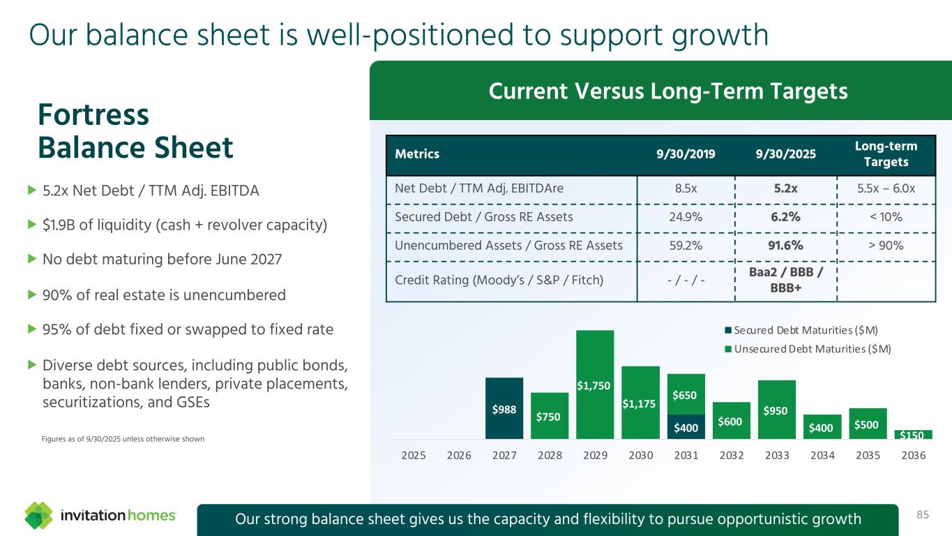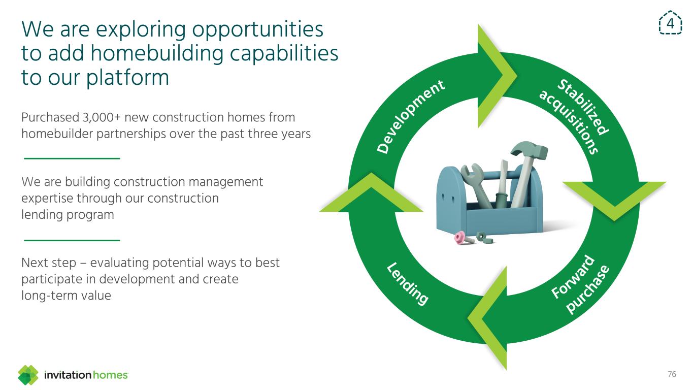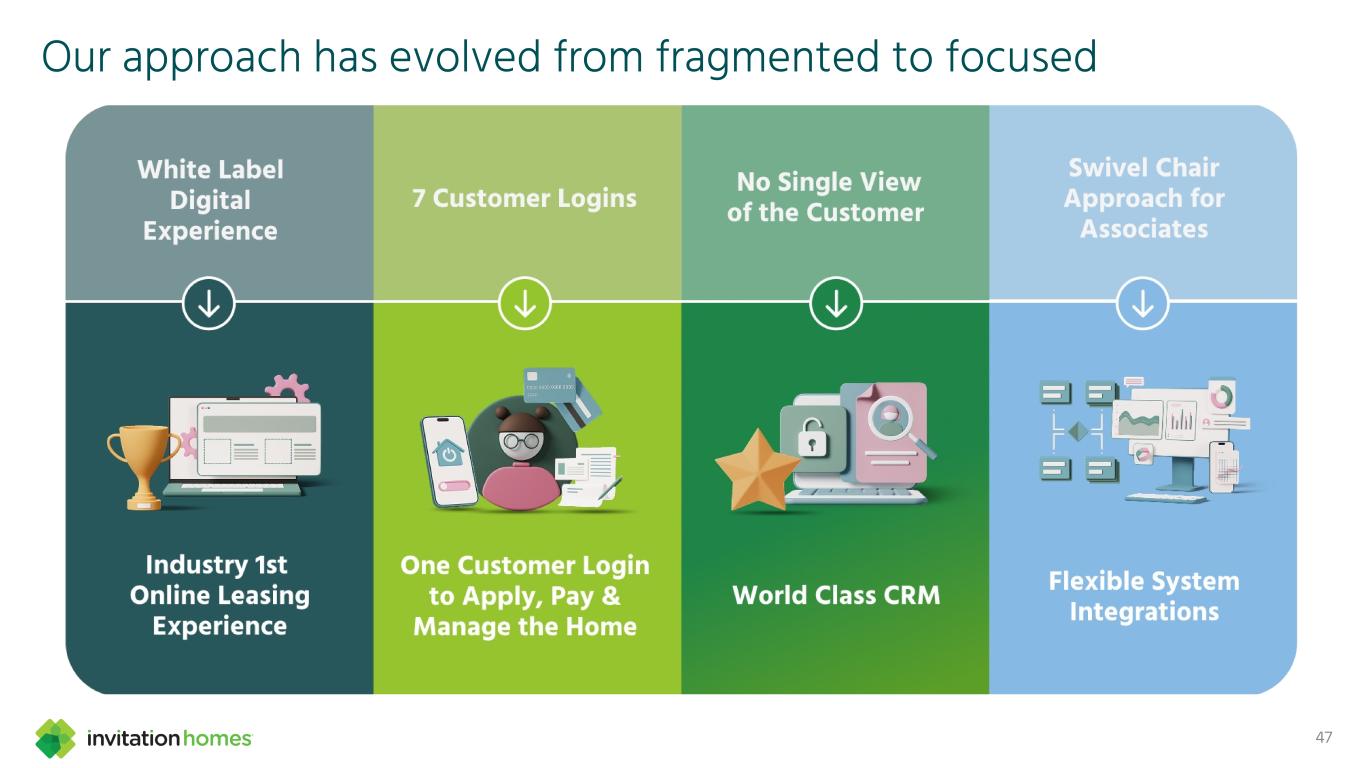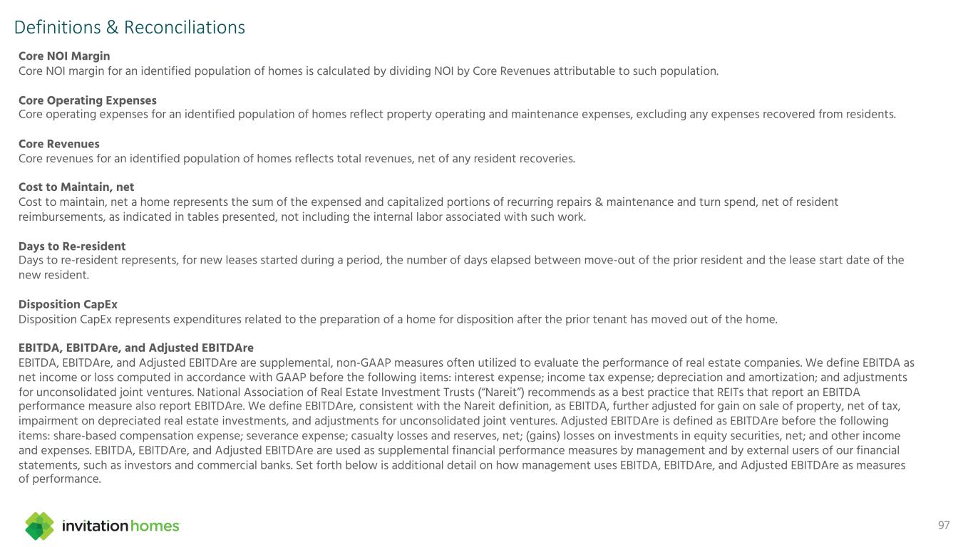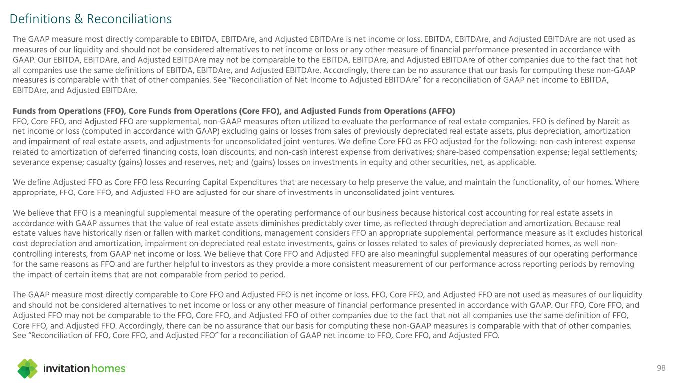 This presentation contains forward-looking statements This presentation contains forward-looking statements within the meaning of Section 27A of the Securities Act of 1933, as amended, and Section 21E of the Securities Exchange Act of 1934, as amended (the “Exchange Act”), which include, but are not limited to, statements related to our expectations regarding the performance of our business, our financial results, our liquidity and capital resources, and other non-historical statements. In some cases, you can identify these forward-looking statements by the use of words such as “outlook,” “guidance,” “believes,” “expects,” “potential,” “continues,” “may,” “will,” “should,” “could,” “seeks,” “projects,” “predicts,” “intends,” “plans,” “estimates,” “anticipates,” or the negative version of these words or other comparable words. Such forward-looking statements are subject to various risks and uncertainties that may impact our financial condition, results of operations, cash flows, business, associates, and residents, including, among others, risks inherent to the single-family rental industry and our business model, macroeconomic factors beyond our control, competition in identifying and acquiring properties, competition in the leasing market for quality residents, increasing property taxes, homeowners’ association (“HOA”) fees and insurance costs, poor resident selection and defaults and non-renewals by our residents, our dependence on third parties for key services, risks related to the evaluation of properties, performance of our information technology systems, development and use of artificial intelligence, risks related to our indebtedness, risks related to the potential negative impact of fluctuating global and United States economic conditions (including inflation and imposition or increase of tariffs and trade restrictions by the United States and foreign countries), uncertainty in financial markets (including as a result of events affecting financial institutions), geopolitical tensions, natural disasters, climate change, and public health crises. Accordingly, there are or will be important factors that could cause actual outcomes or results to differ materially from those indicated in these statements. We believe these factors include, but are not limited to, those described under Part I. Item 1A. “Risk Factors” in our Annual Report on Form 10-K for the year ended December 31, 2024 (the “Annual Report”), as such factors may be updated from time to time in our periodic filings with the Securities and Exchange Commission (the “SEC”), which are accessible on the SEC’s website at www.sec.gov. These factors should not be construed as exhaustive and should be read in conjunction with the other cautionary statements that are included in this presentation, in the Annual Report, and in our other periodic filings. The forward-looking statements speak only as of the date of this presentation, and we expressly disclaim any obligation or undertaking to publicly update or review any forward-looking statement, whether as a result of new information, future developments or otherwise, except to the extent otherwise required by law. 1 This presentation contains non-GAAP financial measures and estimates In addition to financial measures prepared in accordance with United States generally accepted accounting principles (“GAAP”), this presentation includes certain non-GAAP financial measures such as EBITDAre, Core FFO, AFFO, NOI, and others. These non-GAAP measures have limitations as analytical tools and you should not consider them in isolation or as a substitute for the most directly comparable financial measures prepared in accordance with GAAP. There are a number of limitations related to the use of these non-GAAP financial measures versus their most directly comparable GAAP equivalents. Other companies, including companies in our industry, may calculate non-GAAP financial measures differently or may use other measures to evaluate their performance, all of which could reduce the usefulness of these non-GAAP financial measures as tools for comparison. For definitions, additional information, and reconciliations of non-GAAP financial information included in this presentation, see the Appendix to this presentation. You are urged to review the reconciliation of these non-GAAP financial measures to the most directly comparable GAAP financial measures set forth in the Appendix, and not to rely on any single financial measure to evaluate our business. In addition, this presentation includes estimated future AFFO growth levels that are based on current information and assumptions available to us. Arriving at such amounts requires us to make a number of assumptions that may not be true. These estimates reflect long-term targets and do not constitute guidance for any period. There are a number of circumstances in the future that could greatly impact actual results, given circumstances that are not within our control, including the factors set forth under “Forward- Looking Statements.” These targets should not be relied upon when making an investment decision. We do not provide a reconciliation of these targets to the comparable GAAP financial measure, as it cannot be provided without unreasonable effort because we are unable to reasonably predict certain items contained in the GAAP measures, including non- recurring and infrequent items that are not indicative of our ongoing operations. These items are uncertain, depend on various factors, and could have a material impact on our GAAP results for the target period.