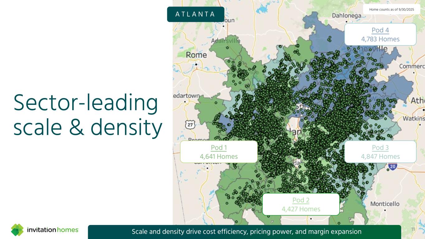 High-growth locations Percent of 3Q25 revenue Seattle 6% Minn. 1% Denver 4% Dallas 4% Phoenix 9% Atlanta 13% Tampa 11% Southern California 11% Las Vegas 4% South Florida 12% Northern California 5% Carolinas 6% Jax. 2% Orlando 8%Hou. 2% Chicago 2% 10Primarily infill locations in high-growth markets for long-term performance