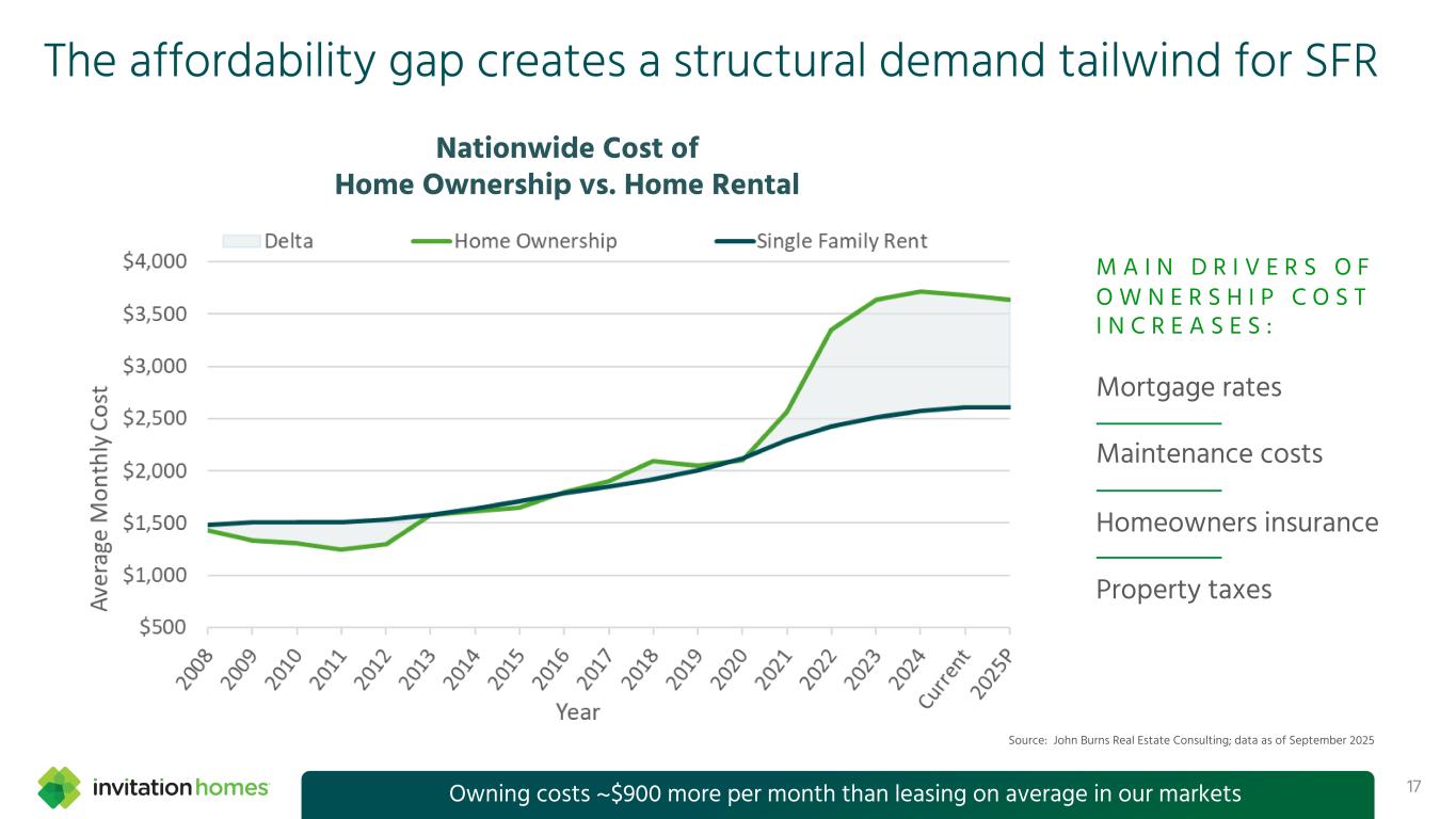 Net migration trends in our markets remain resilient 16Jobs, quality of life, and affordability remain powerful draws for our markets Source: John Burns Research & Consulting; data as of September 2025