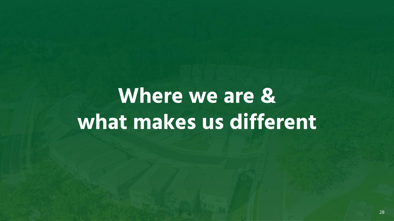 This creates a long runway of opportunity for growth Source: John Burns Research & Consulting, Single-Family Rental Analysis and Forecast, published September 2025 3.30% 0.0% 20.0% 40.0% 60.0% 80.0% 100.0% Ownership Own 1,000+ homes Own 100-999 homes Own 10-99 homes Own 1-9 homes 4 6 M I L L I O N R E N T A L H O U S E H O L D S Single- Family: 30% (14M units) Owned: 65% (88M units) Rented: 35% (46M units) 1 3 4 M I L L I O N H O U S E H O L D S Vacant: 9% (14M units) 1 4 8 M I L L I O N H O U S I N G U N I T S “Mom & Pop” Owners 76.8% 1 4 M I L L I O N S F R H O M E S “Mom & Pop” owners dominate SFR; professionals own just 3% Mobile Homes, Boats, Etc.: 4% (2M units) Households: 91% (134M units) Apartments: 66% (31M units) 18