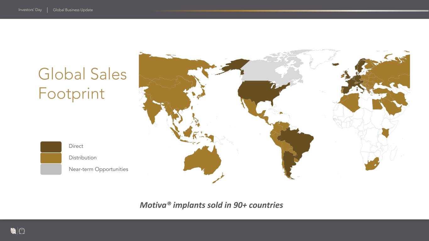 Motiva® implants sold in 90+ countries Direct Distribution Near-term Opportunities Global Sales Footprint Investors’ Day Global Business Update