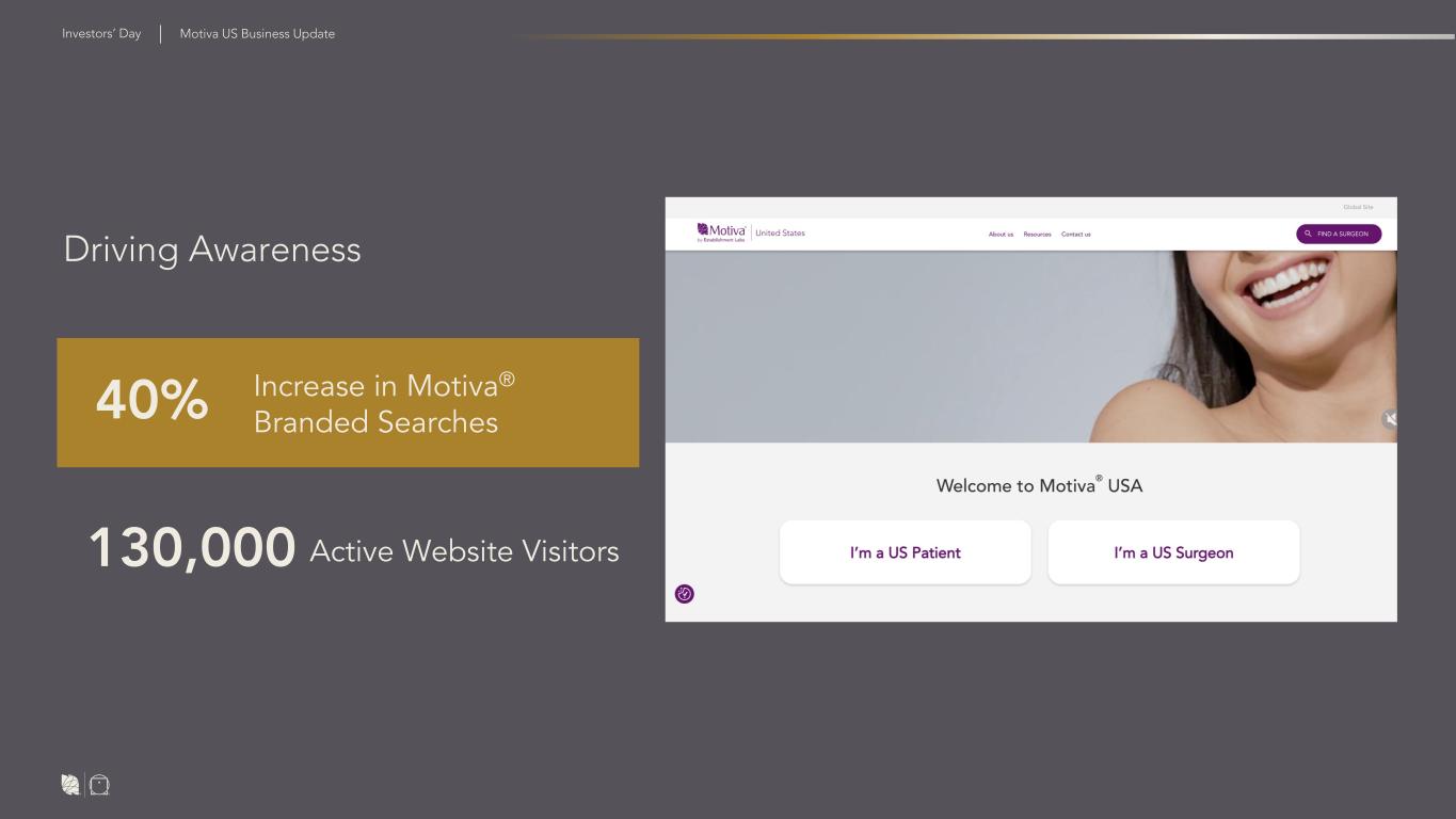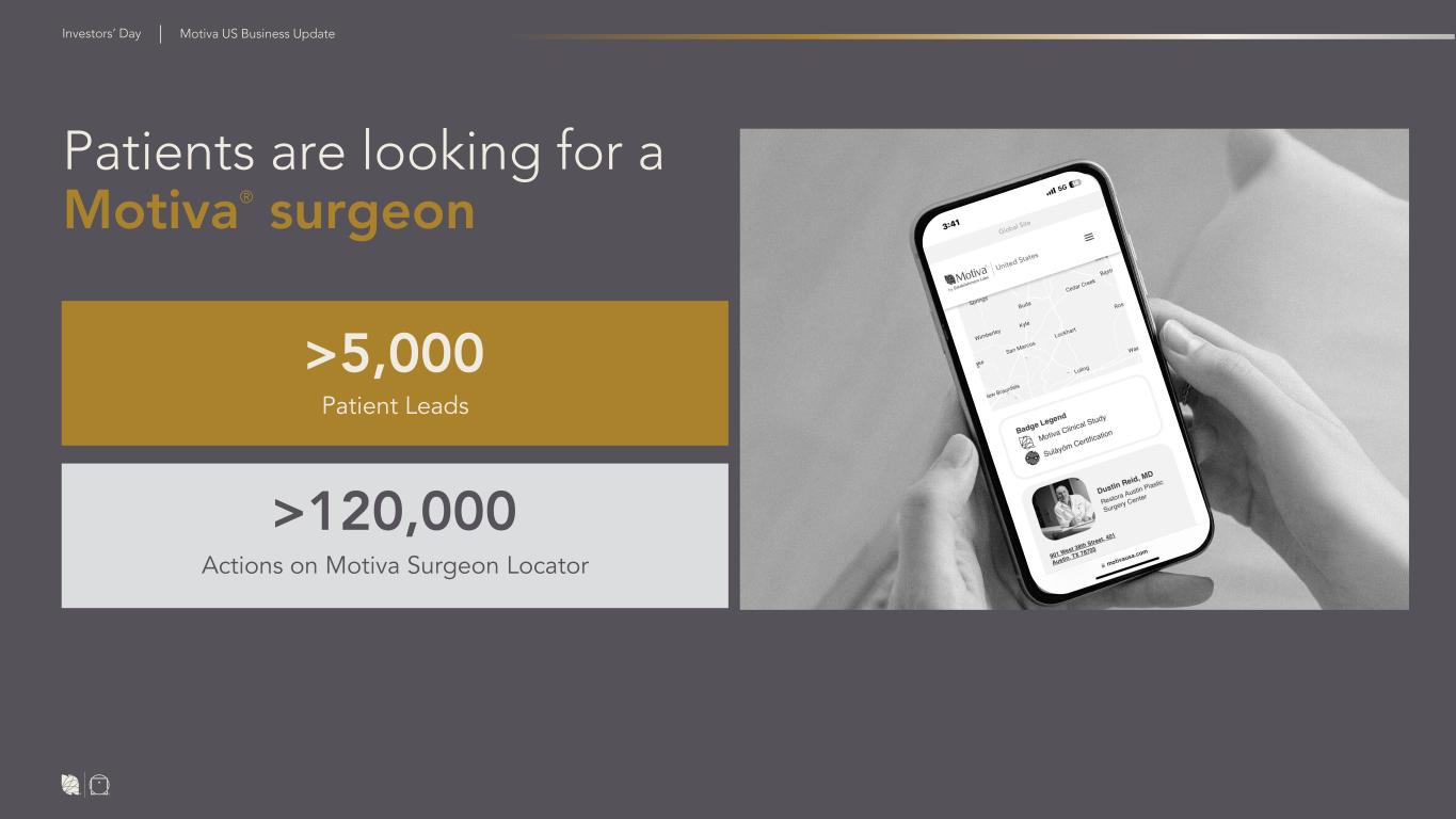 Patients are looking for a Motiva® surgeon Patient Leads >5,000 Actions on Motiva Surgeon Locator >120,000 Motiva US Business UpdateInvestors’ Day