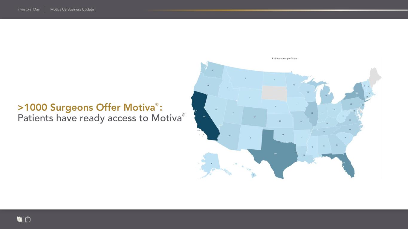 >1000 Surgeons Offer Motiva® : Patients have ready access to Motiva® Motiva US Business UpdateInvestors’ Day